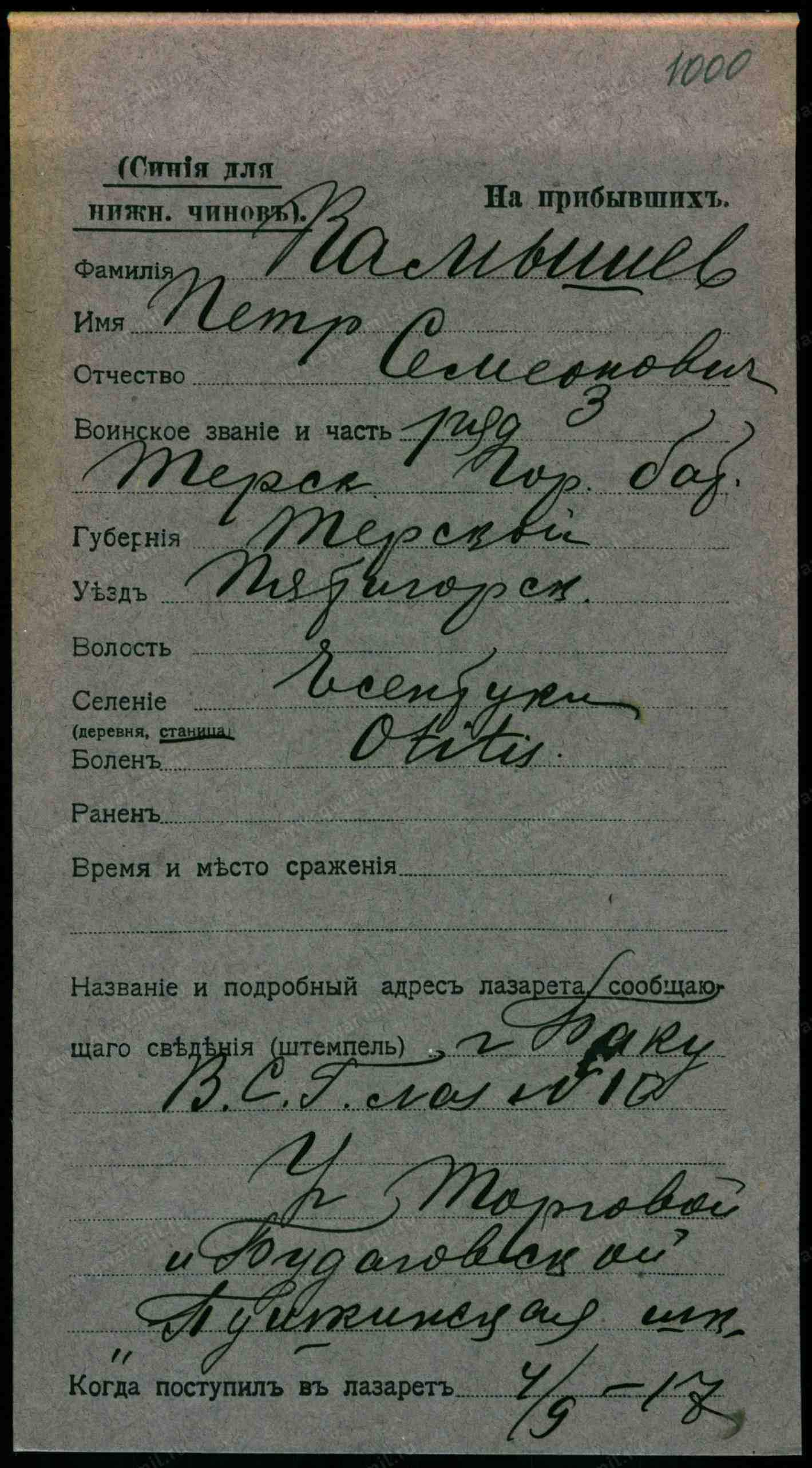 Фонд Картотека бюро учета потерь в Первой мировой войне (офицеров и солдат)