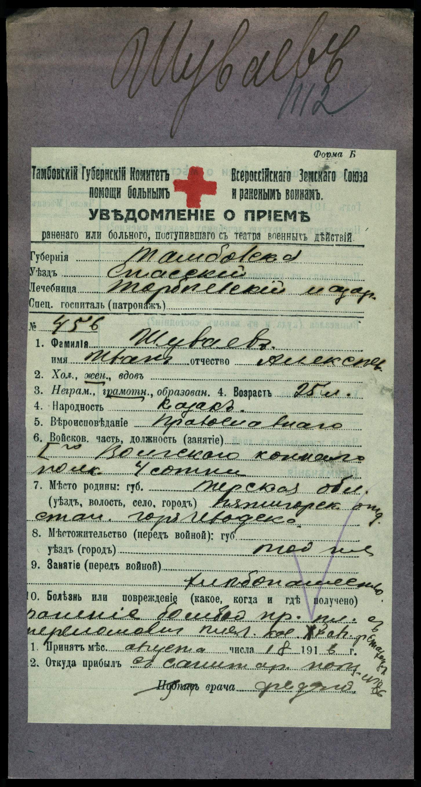 Дата выбытия 07.08.1916