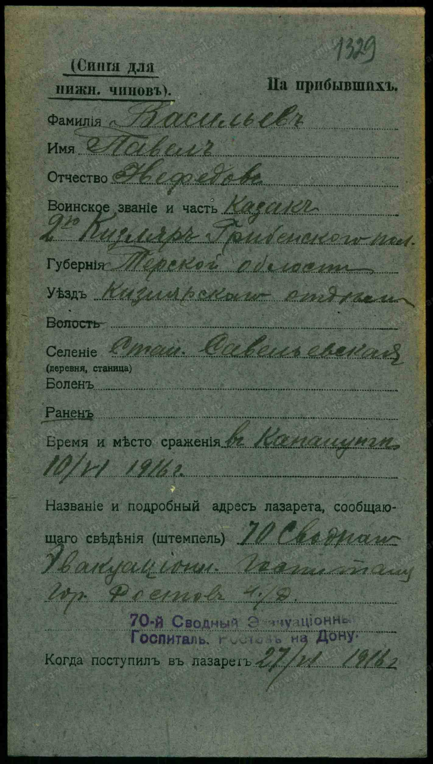 Место лечения: Донского Войска обл., г.Ростов-на-Дону