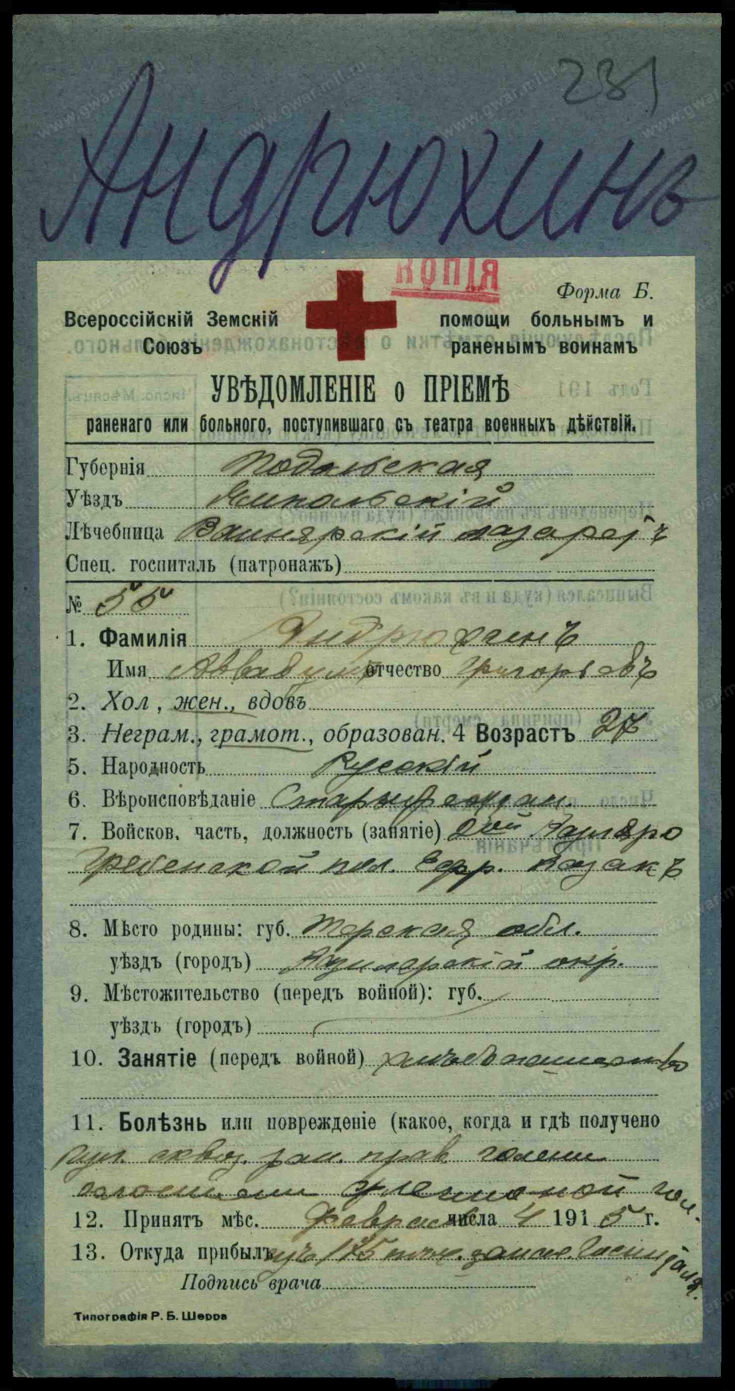 Типография Терского Областного Правления.