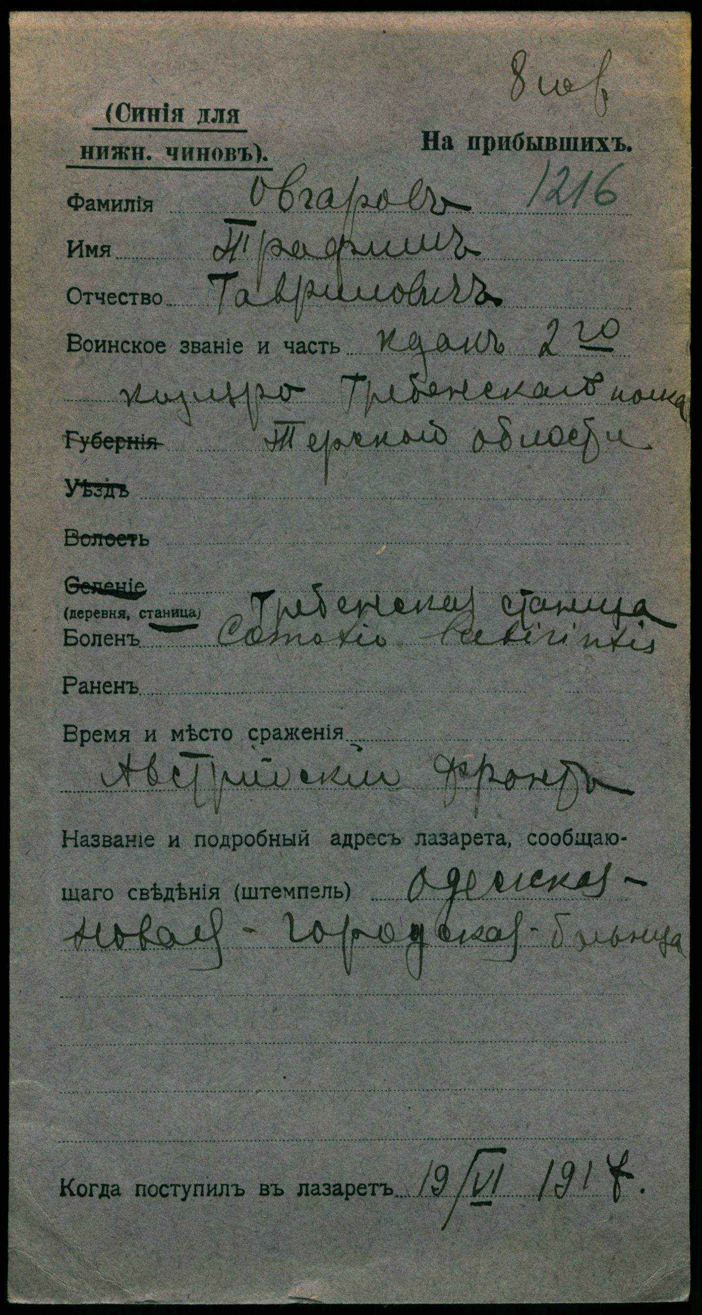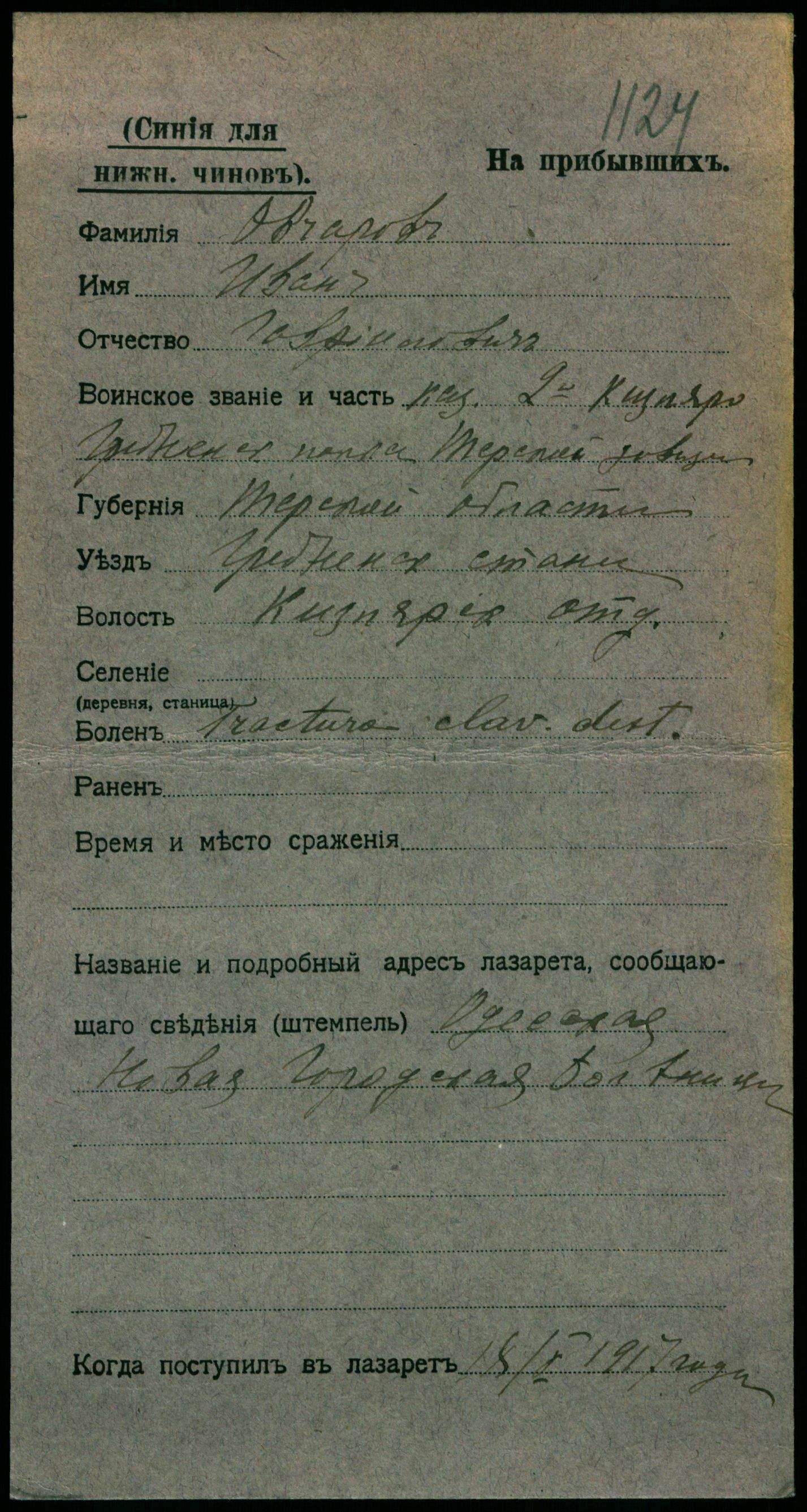 Фонд Картотека бюро учета потерь в Первой мировой войне (офицеров и солдат)