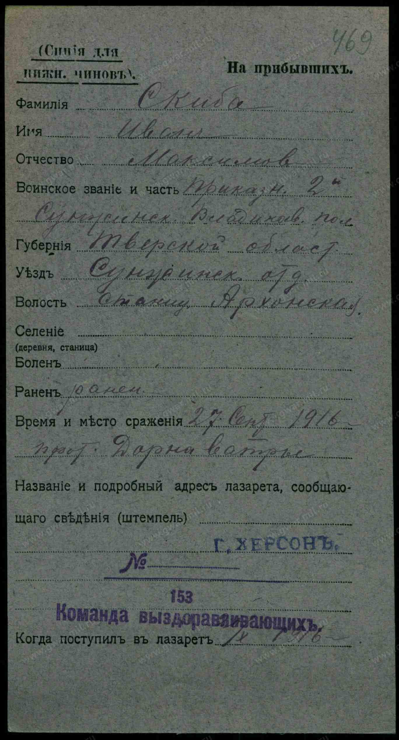 Дата выбытия 27.09.1916