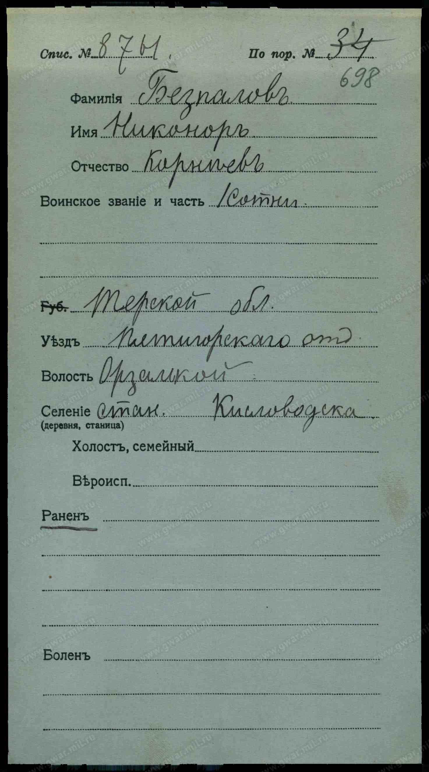Списокъ казакамъ Терскаго казачьяго войска, съ которыхъ, согласно журнальнаго постановленія областного правленія Терской области, состоявшагося 10 февраля 1905 года, слагаются долги въ общій войсковой капиталъ сего войска за неслужилый разрядъ, по безнадежности къ поступленію и бѣдности.