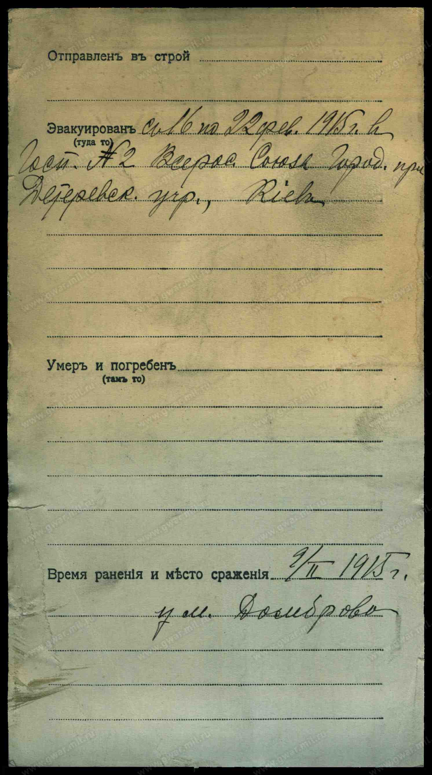 Дата выбытия 25.08.1915