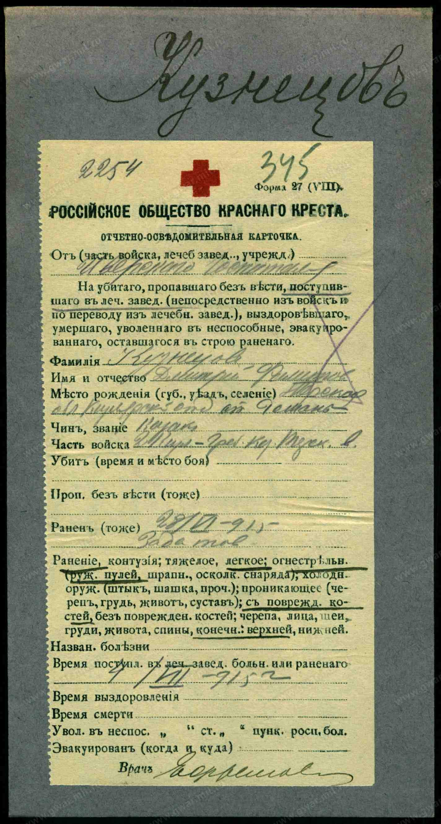 Фонд Картотека бюро учета потерь в Первой мировой войне (офицеров и солдат)
