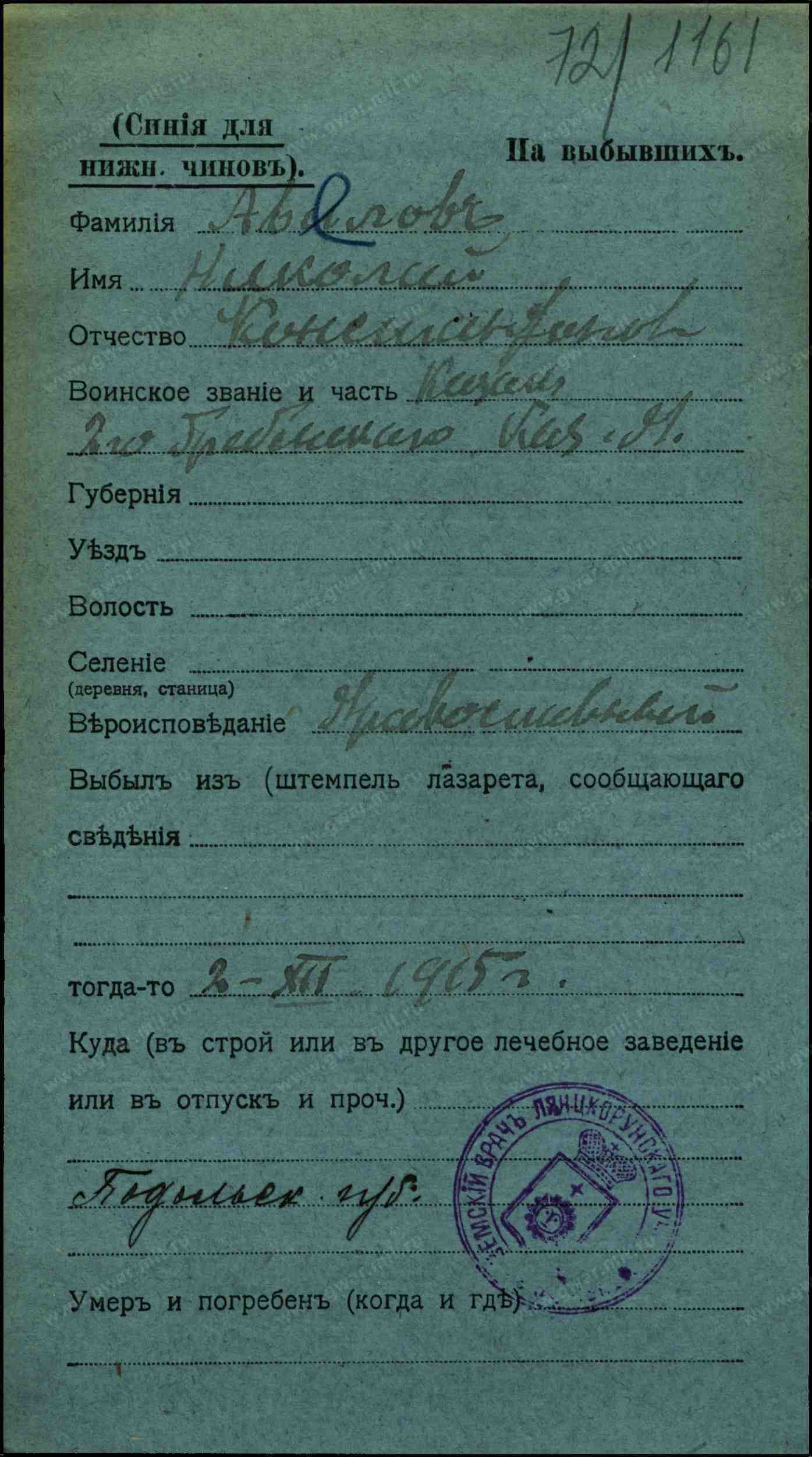 Тип документа Карточка на выбывших (нижние чины)