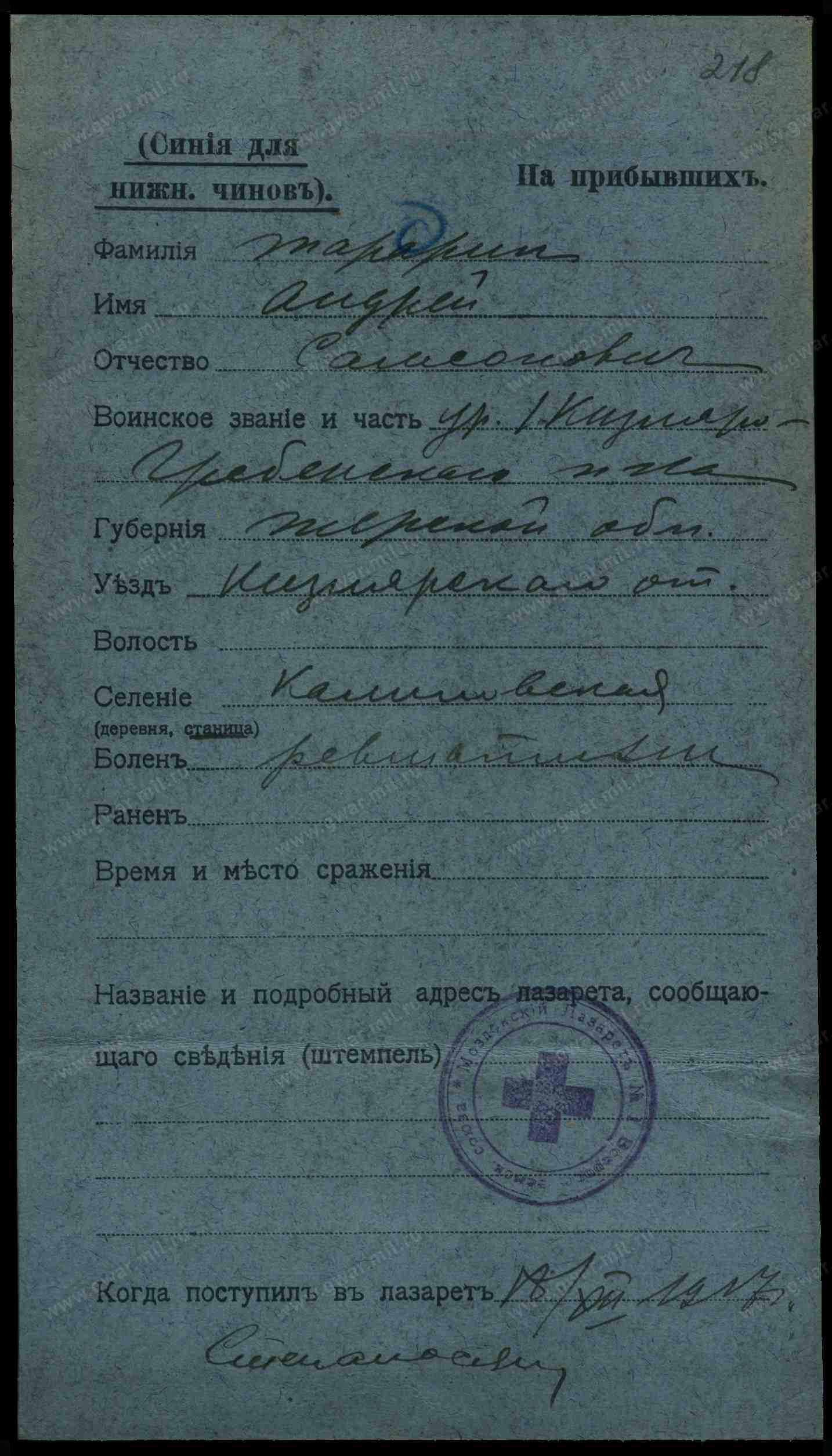 2. Тарарин Евдоким Исаков, сын, 18 лет, женат, казак, родился здесь, ...