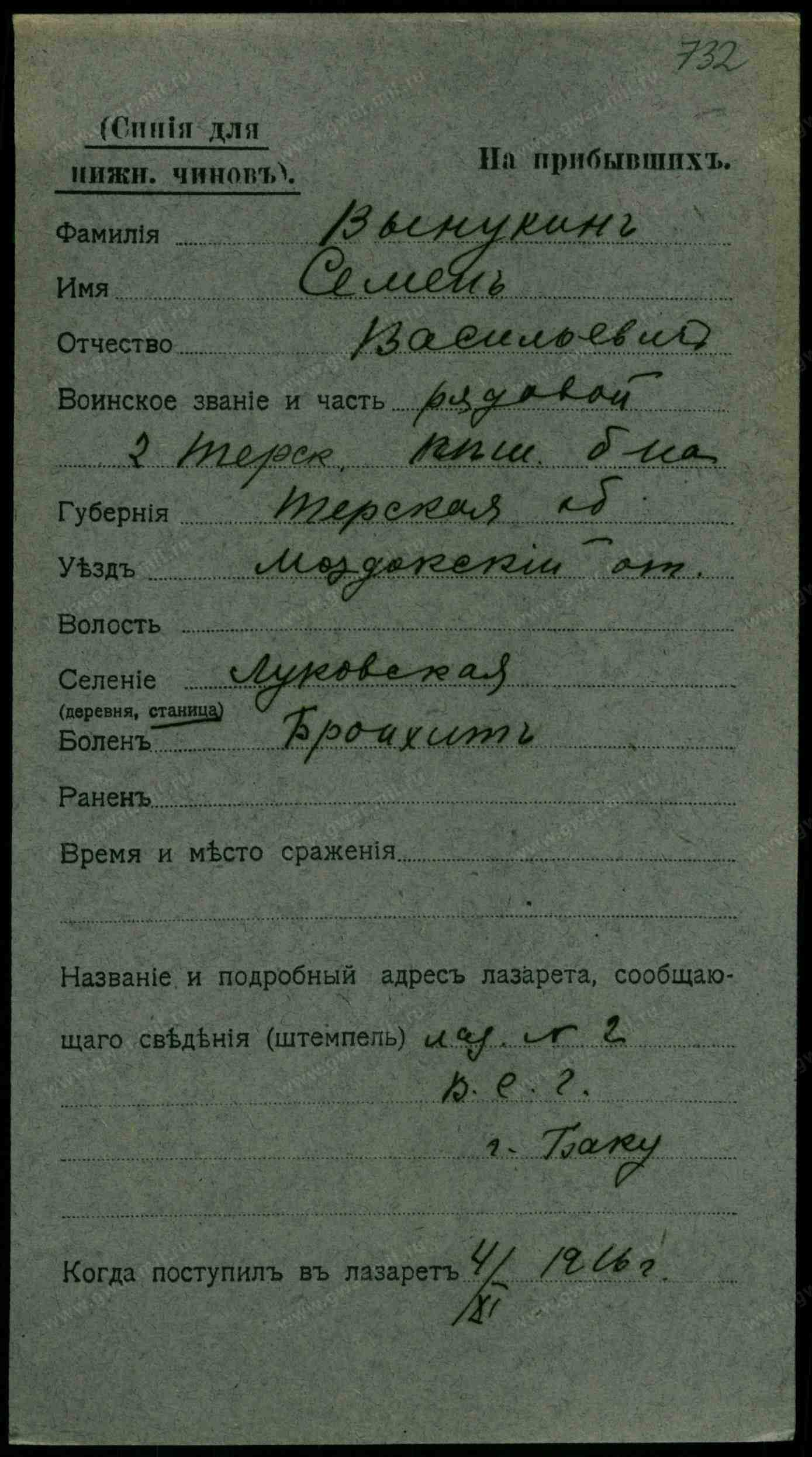 Место рождения. Губерния Терская обл.