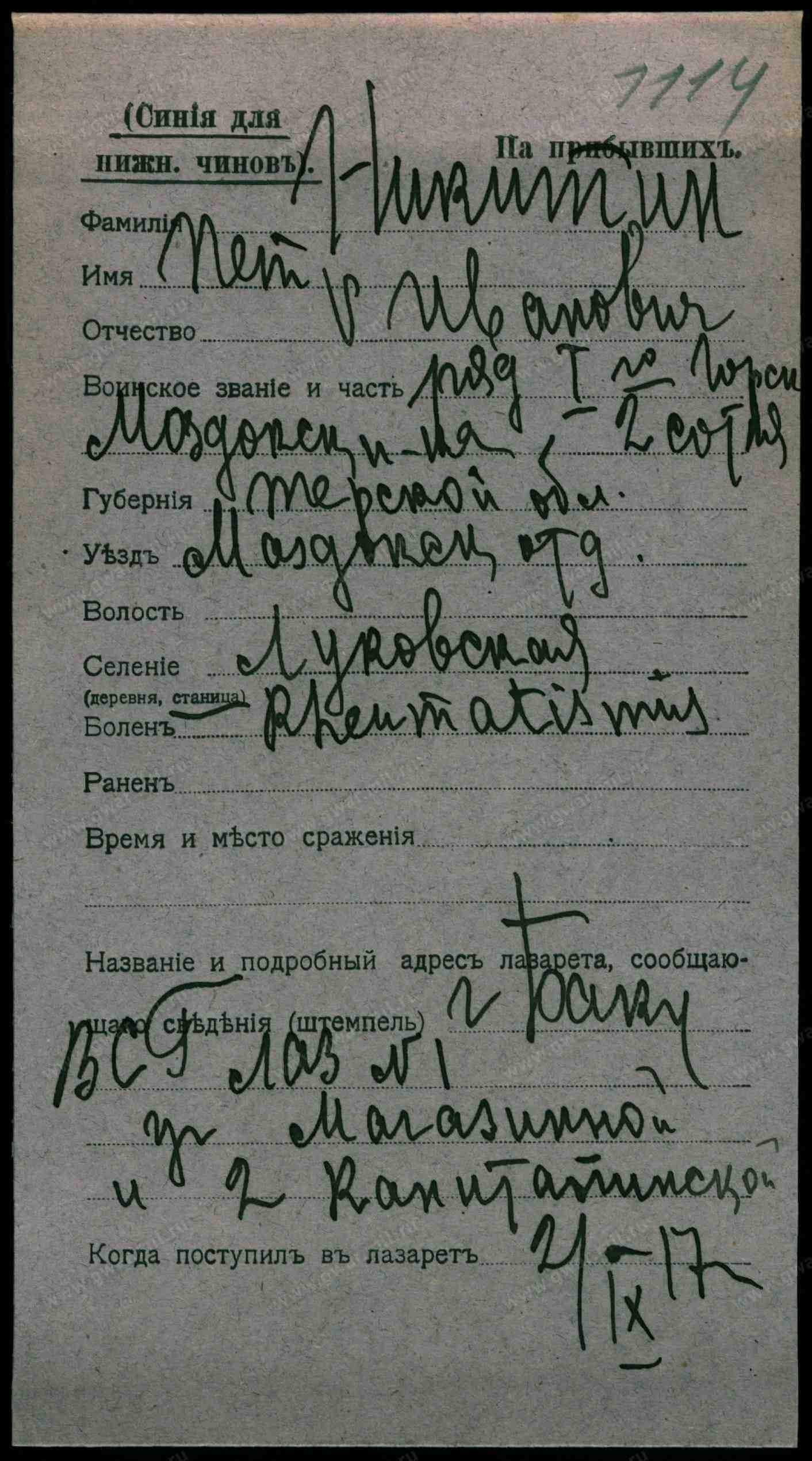 *** Станица не указана, фамилия Никитин в Моздокском отделе встречается в Солдатской, Луковской, Екатериноградской, Стодеревской и Галюгаевской станицах, размещаю в первой попавшейся, т.к. очень сложно определить. Если выяснится его точная станица, перемещу в соответствующую тему...