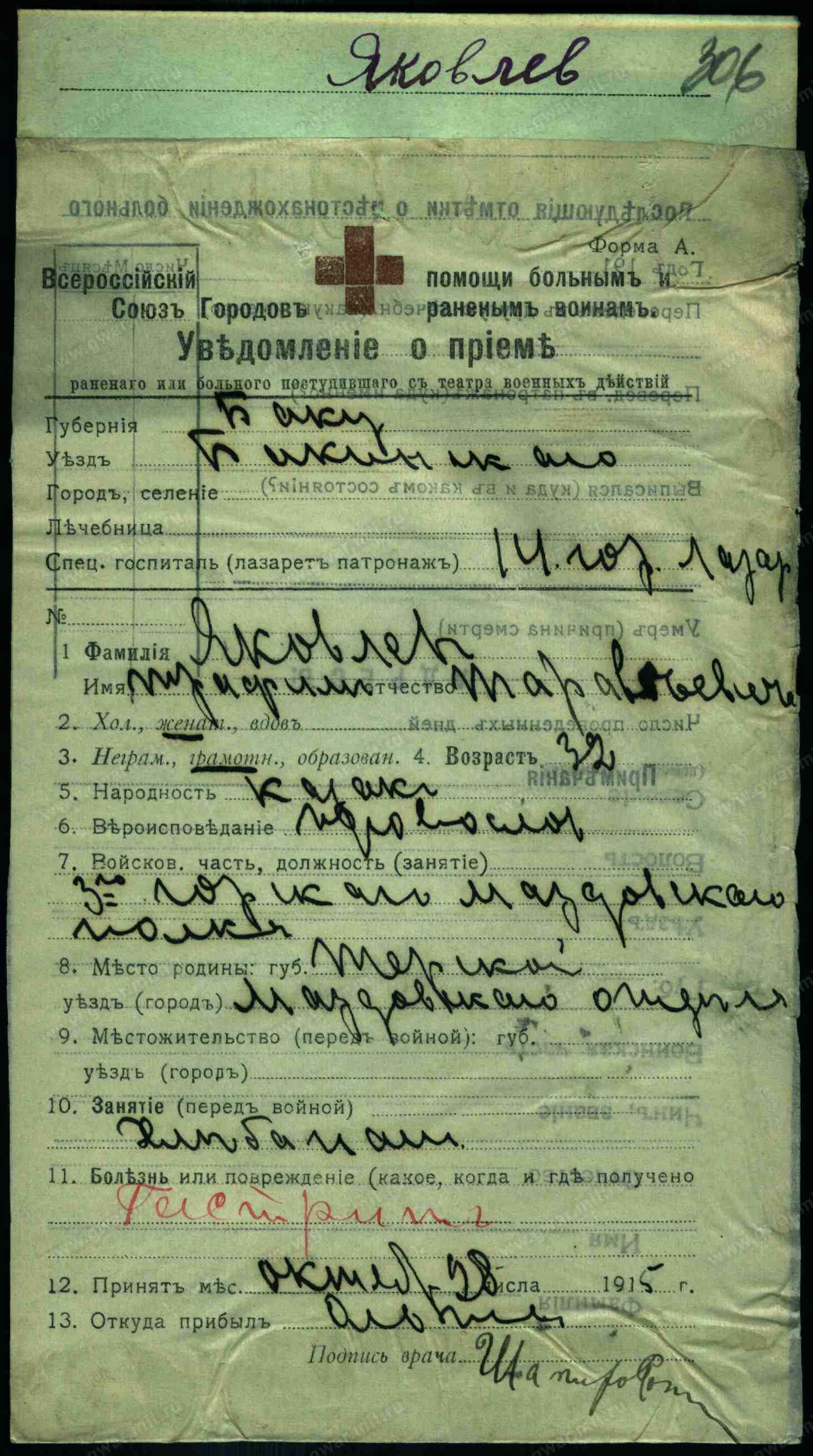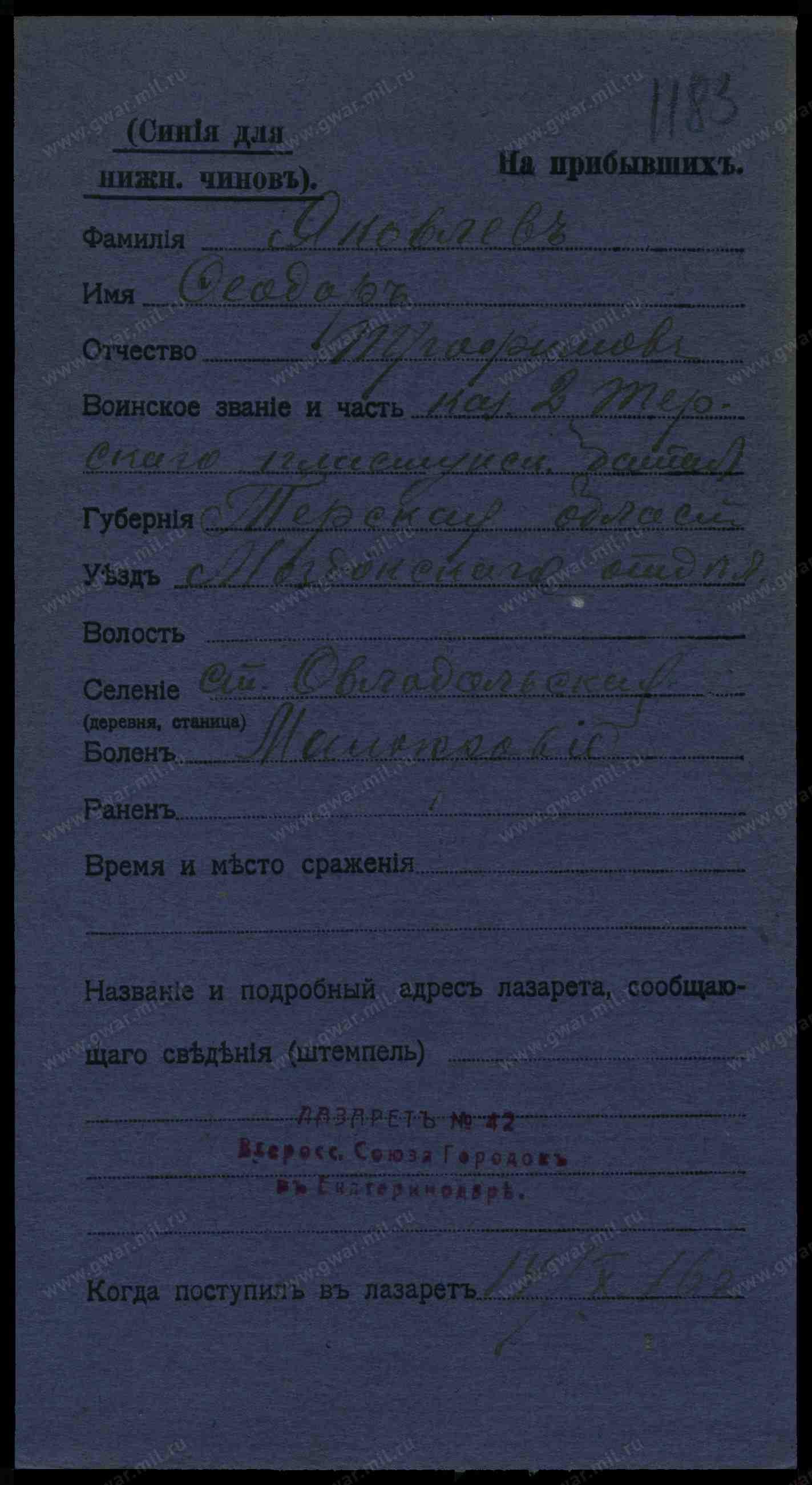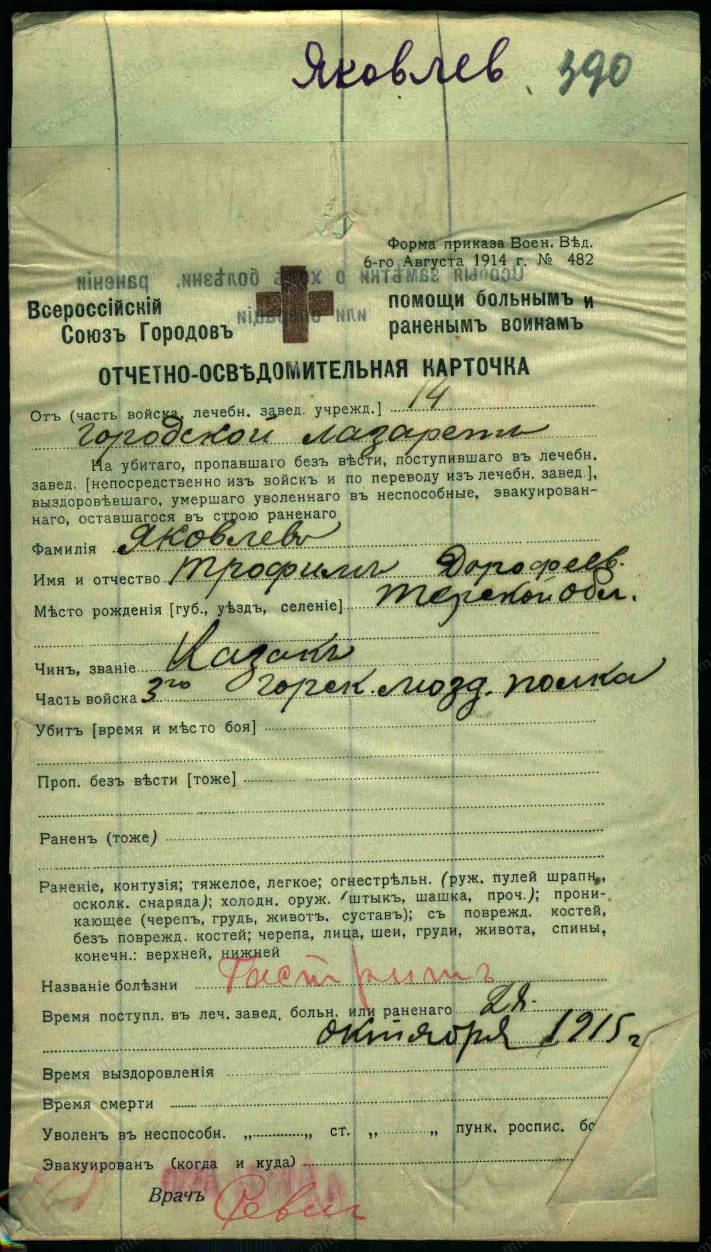 Фонд Картотека бюро учета потерь в Первой мировой войне (офицеров и солдат)