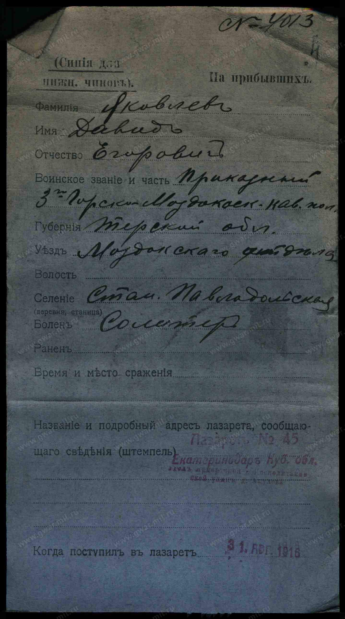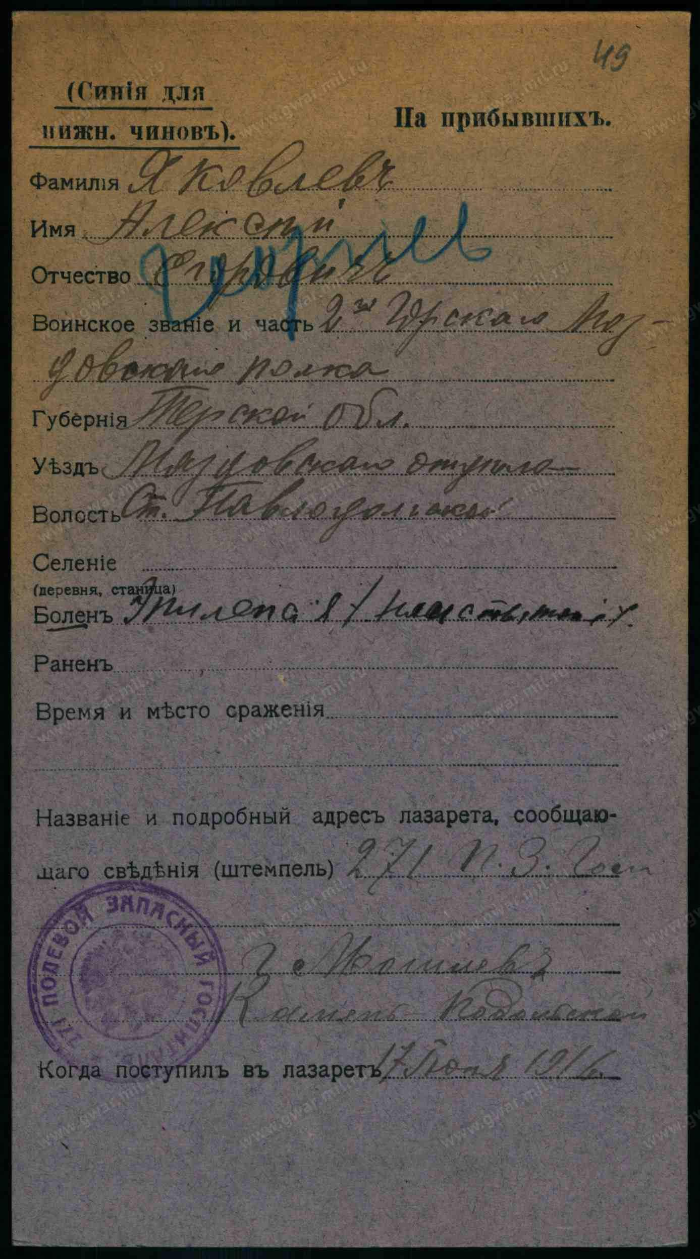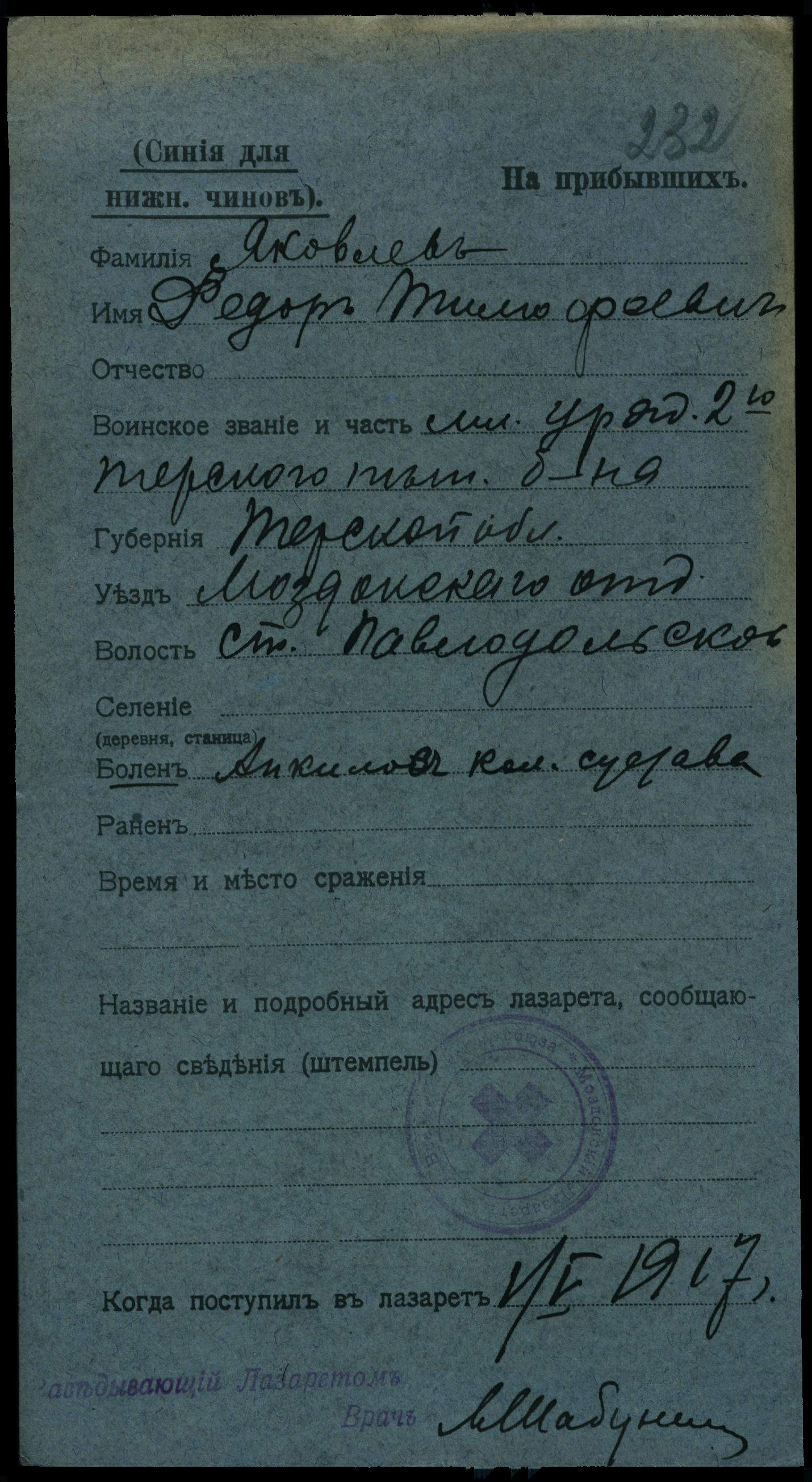 Фонд Картотека бюро учета потерь в Первой мировой войне (офицеров и солдат)