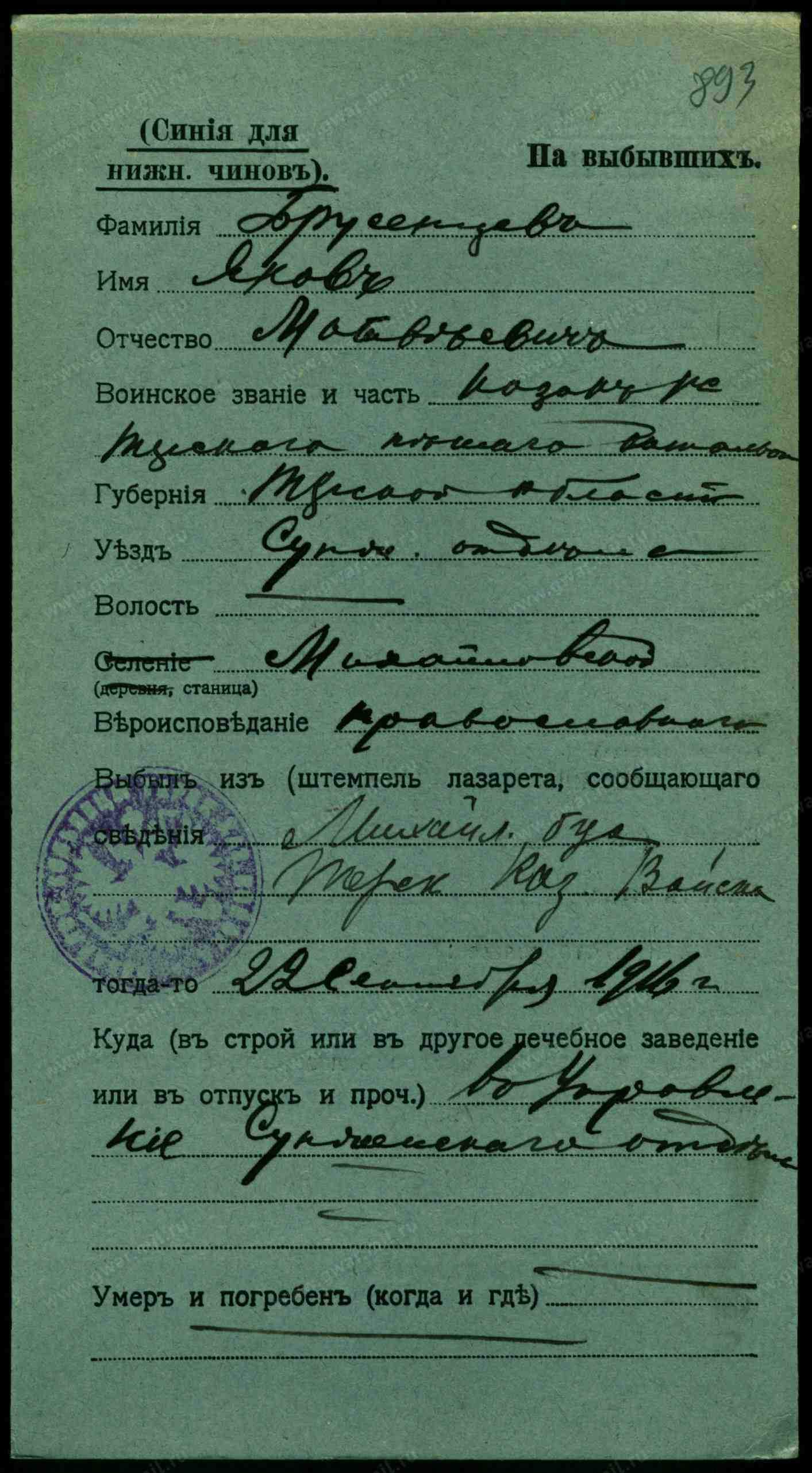 Место рождения Терская обл., Сунженский отдел, стнц. Михайловская