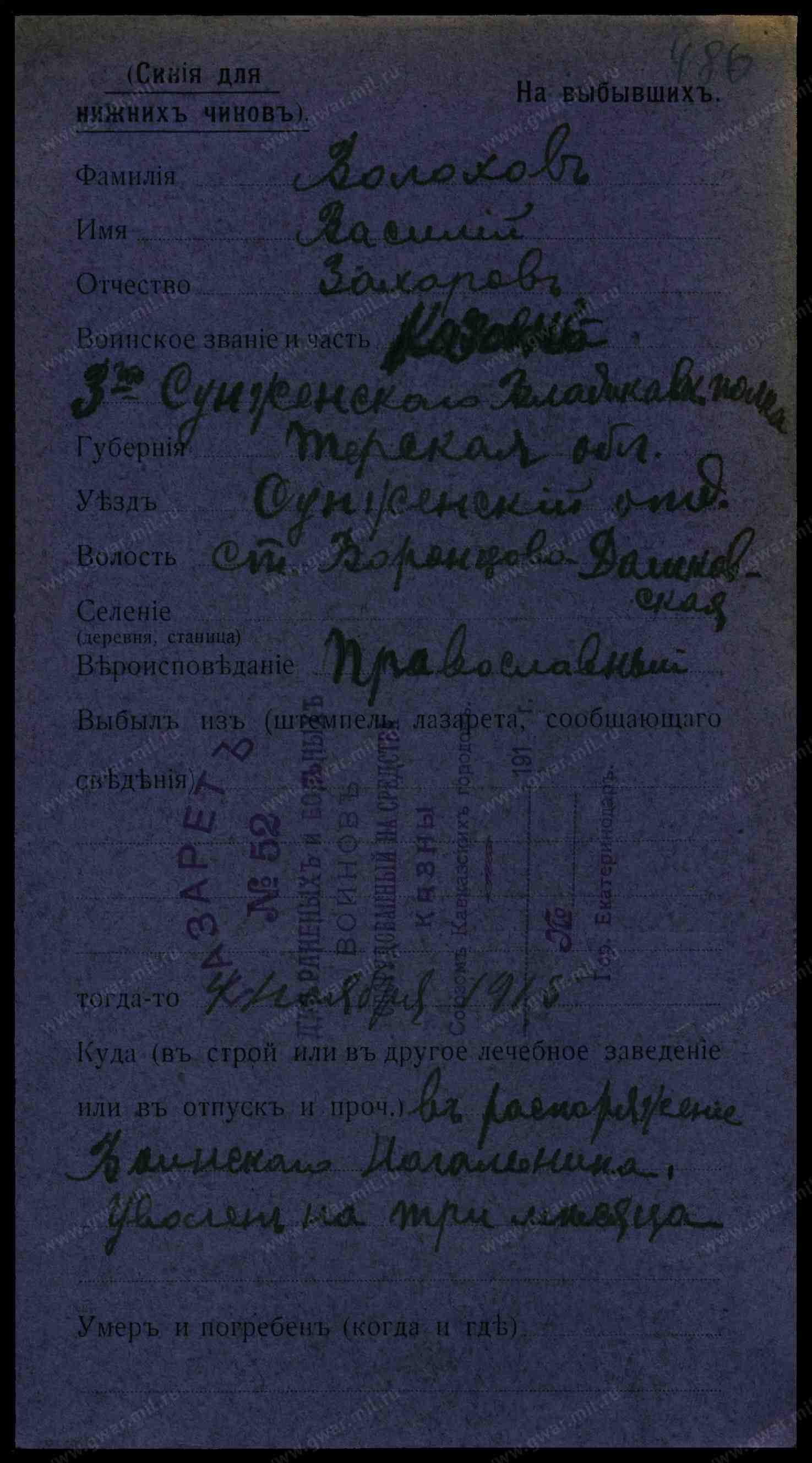 Место рождения Терская обл., Сунженский отдел, Воронцово-Жашковская станица