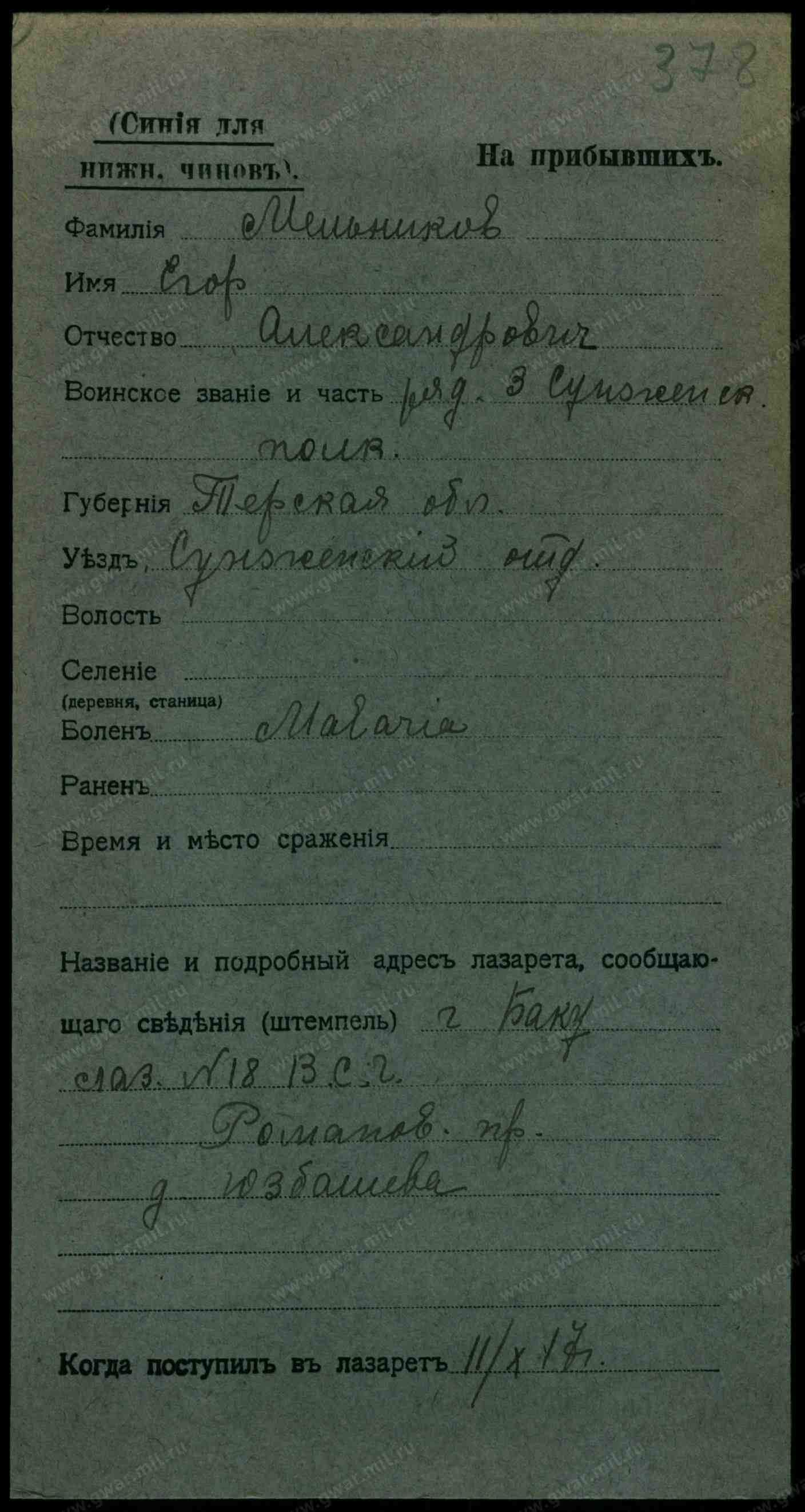 Красноармеец, __.__.1923 Грозненская обл., Сунженский р-н, ст. Троицкая. Сводная картотека