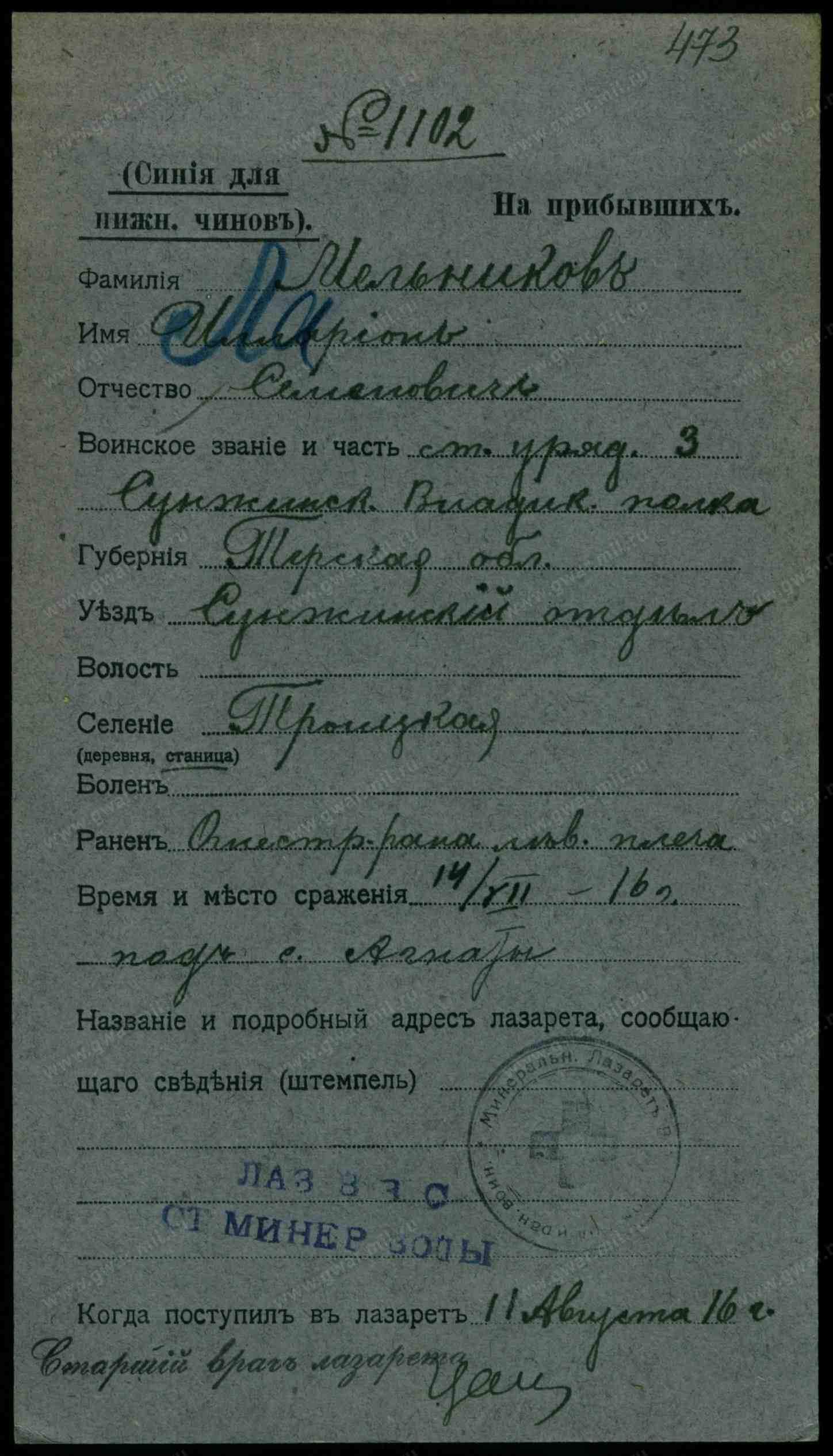 Гв. сержант, __.06.1922 Грозненская обл., Сунженский р-н, станица Троицкая. Сводная картотека