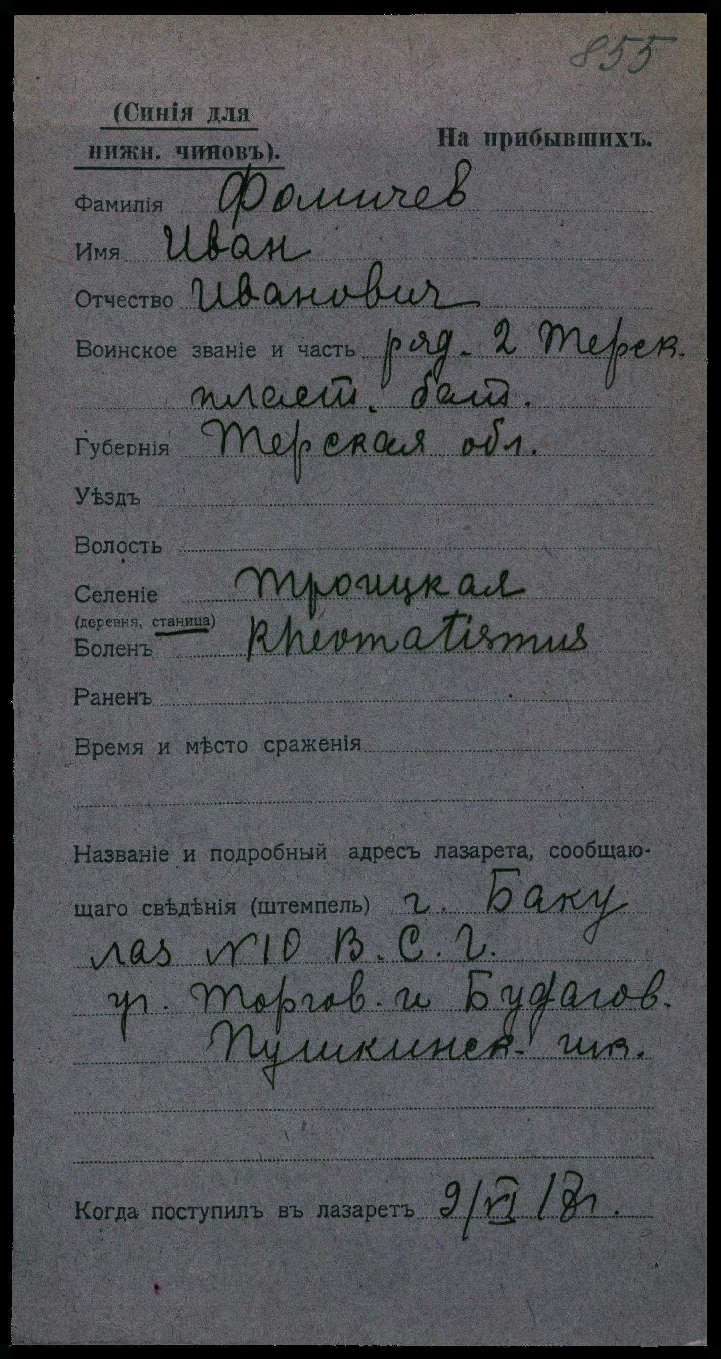 Ст. сержант __.__.1918 Грозенская обл., станица Троицкая. Сводная картотека