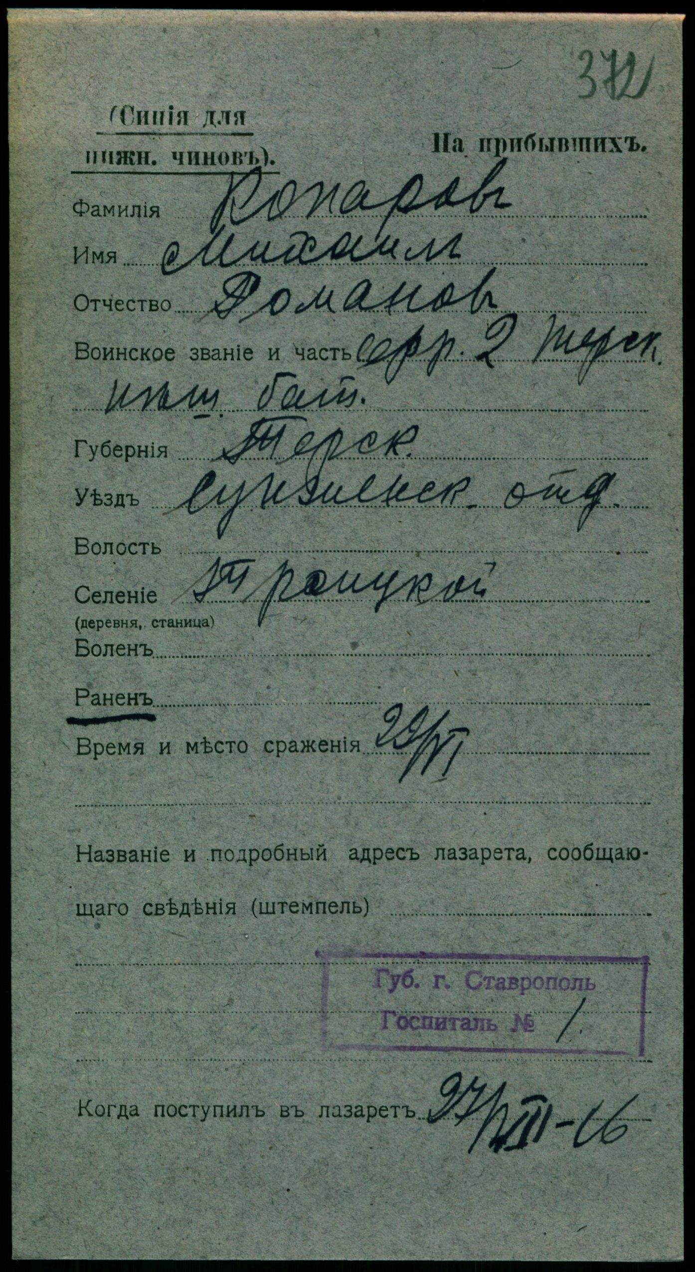 Фонд Картотека бюро учета потерь в Первой мировой войне (офицеров и солдат)