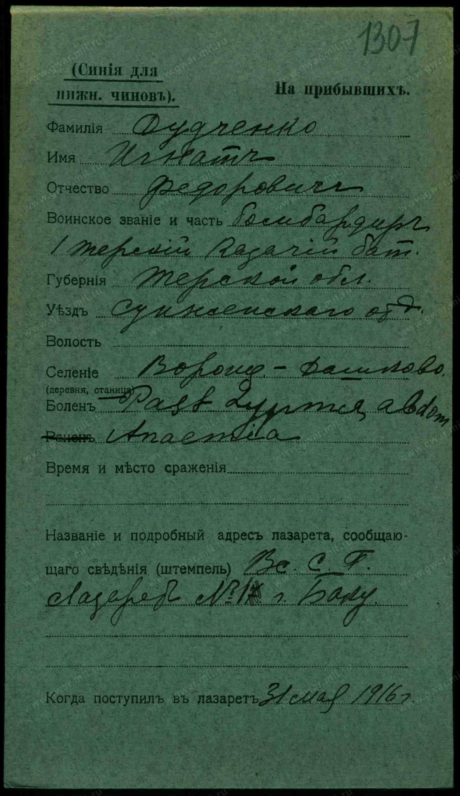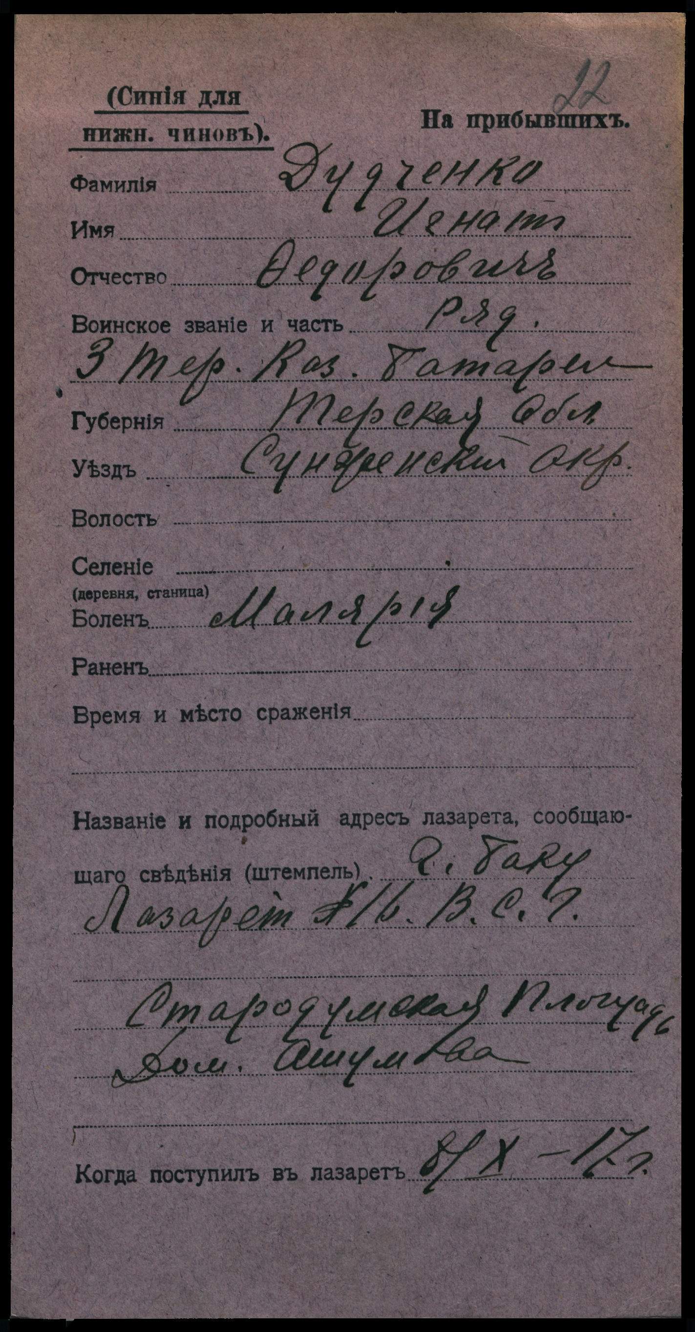 Фонд Картотека бюро учета потерь в Первой мировой войне (офицеров и солдат)