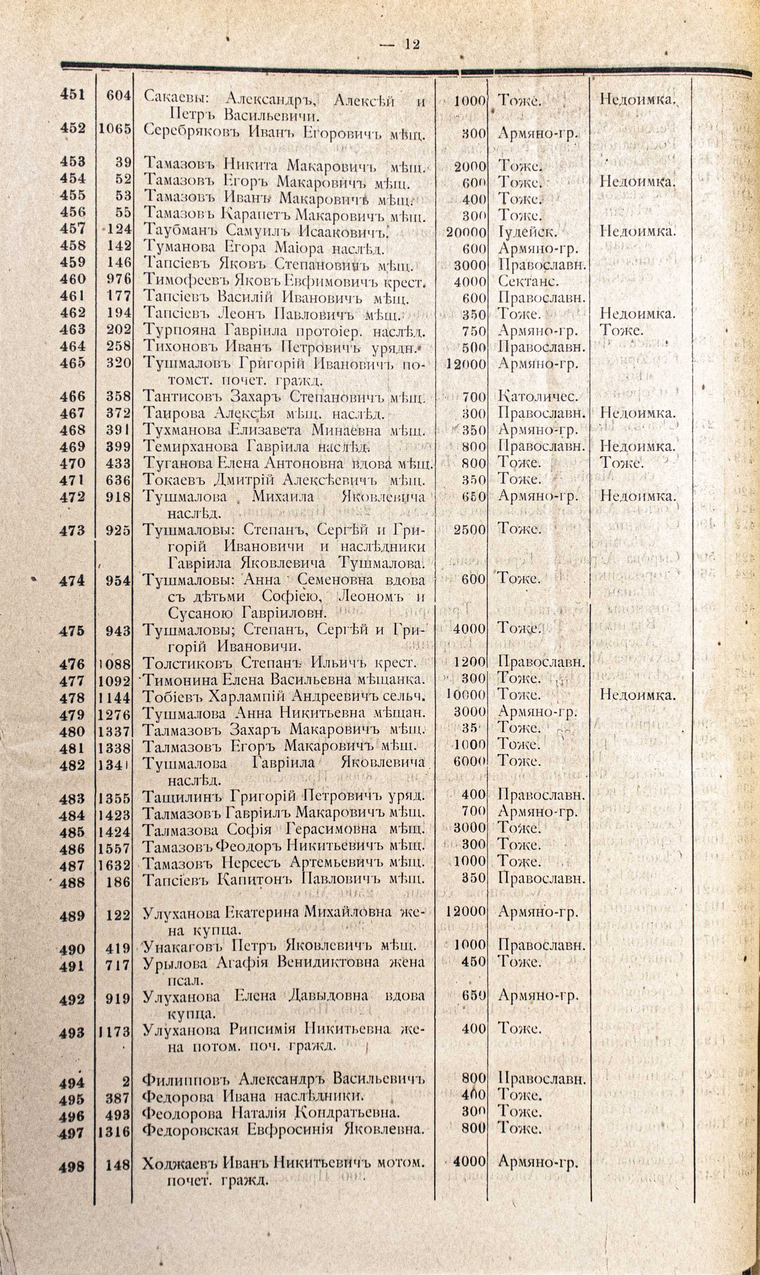 11. Агагуловы Марія Варламовна, вдова и дѣти: Яковъ, Анна и Серанушъ.