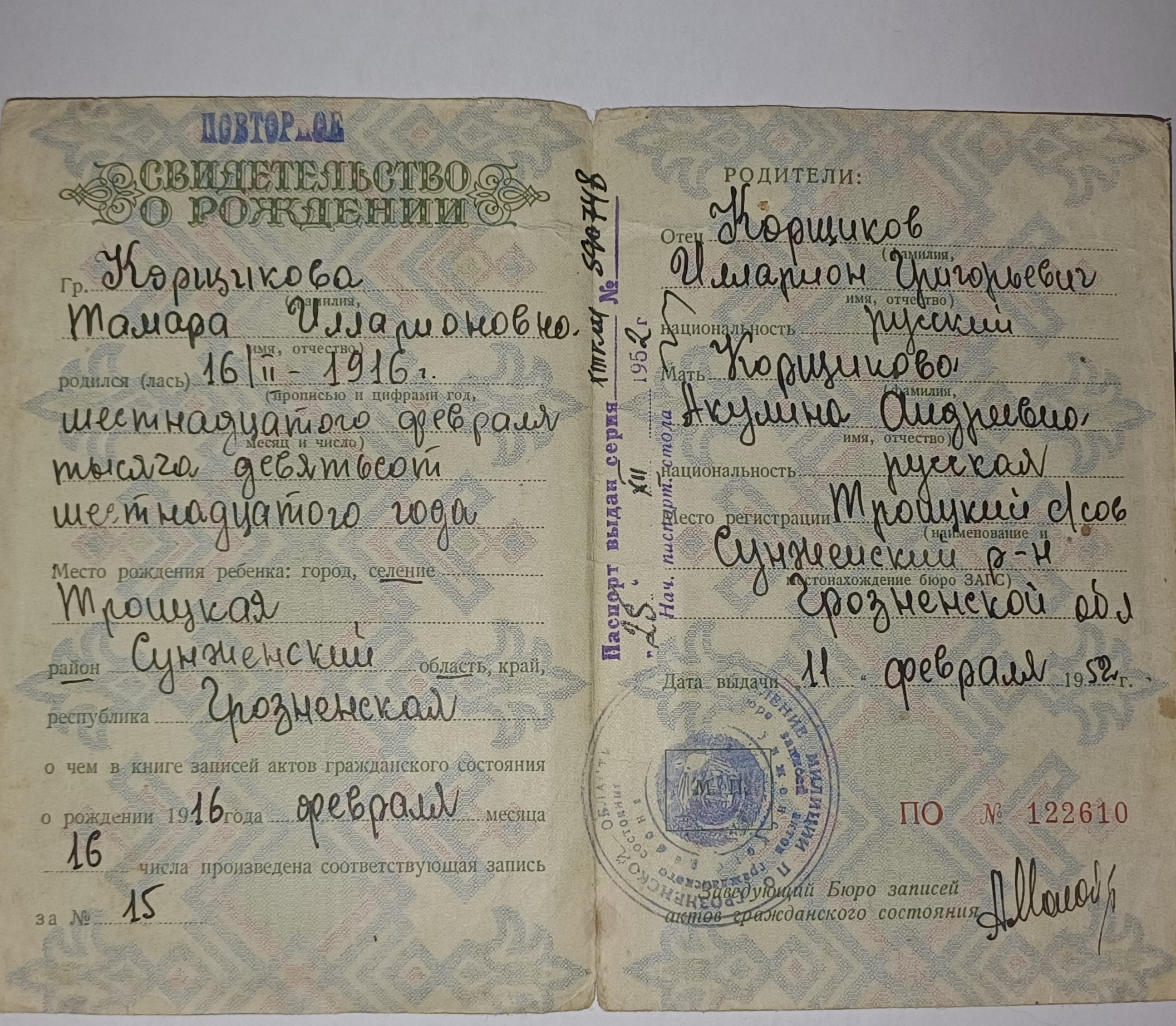 Жена: Коршикова Анна Васильевна ст. Троицкая