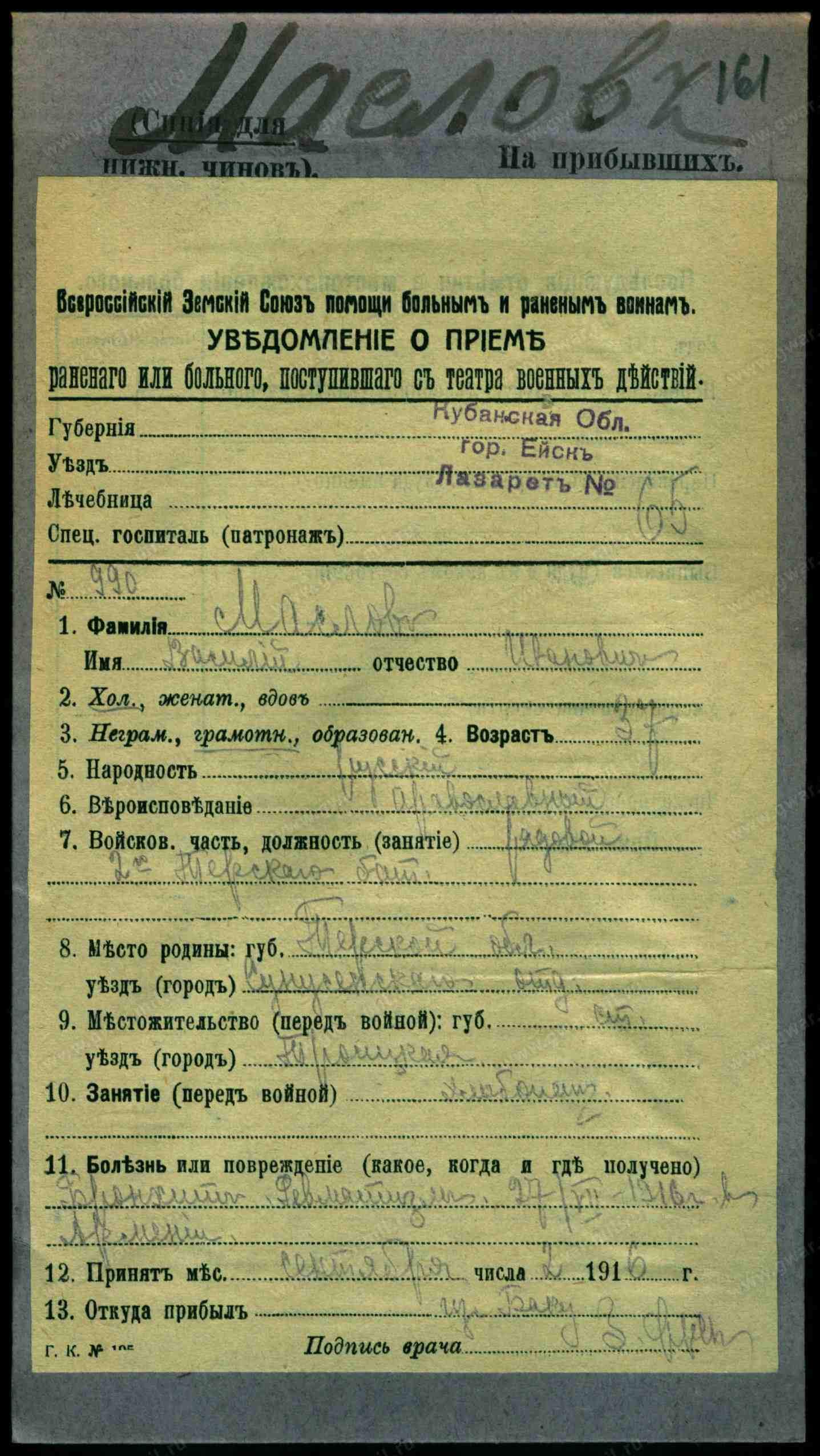Рядовой __.__.1918 Грозненская обл., Суфимский р-н, ст. Троицкая. Донесение о потерях