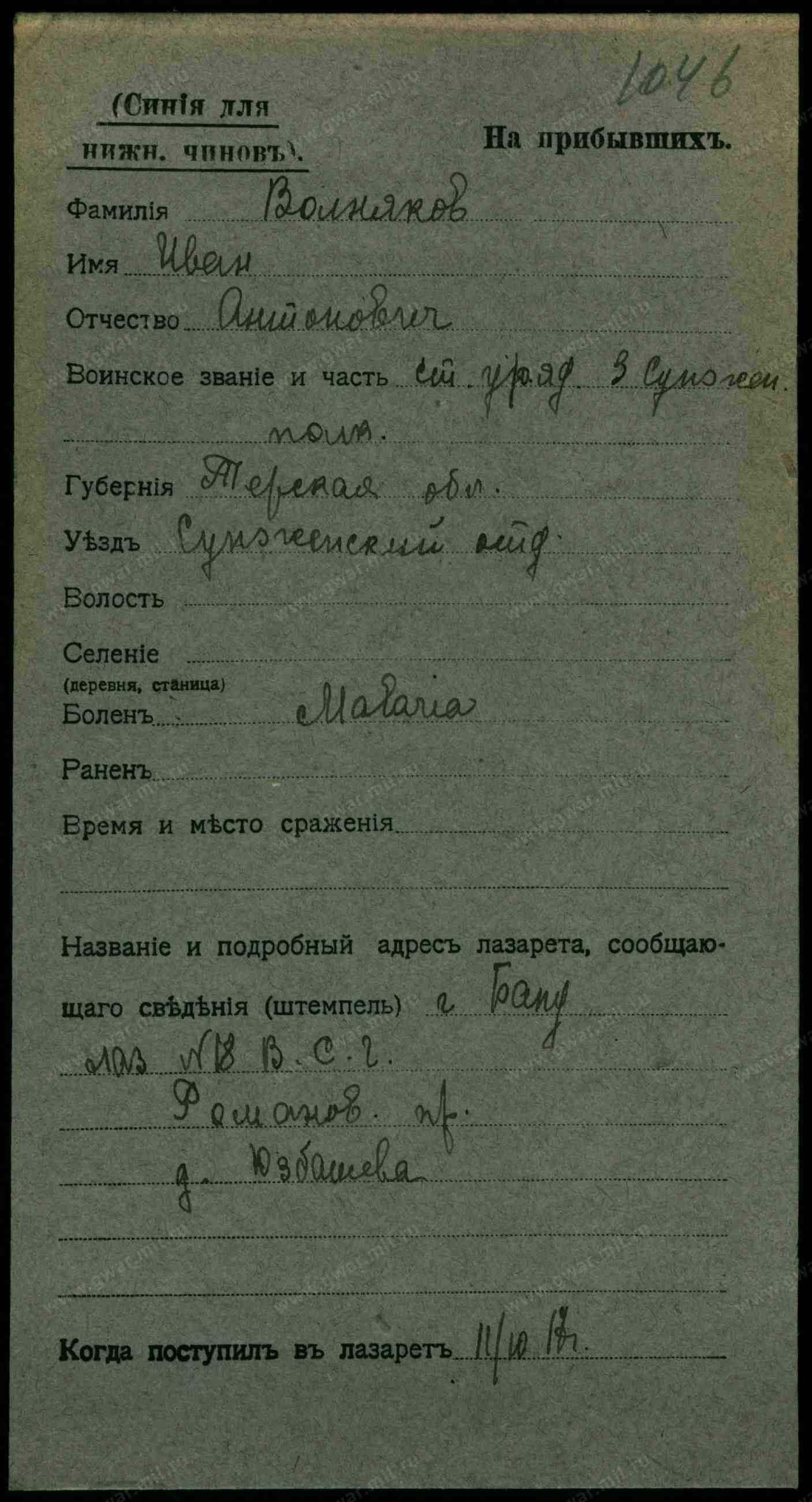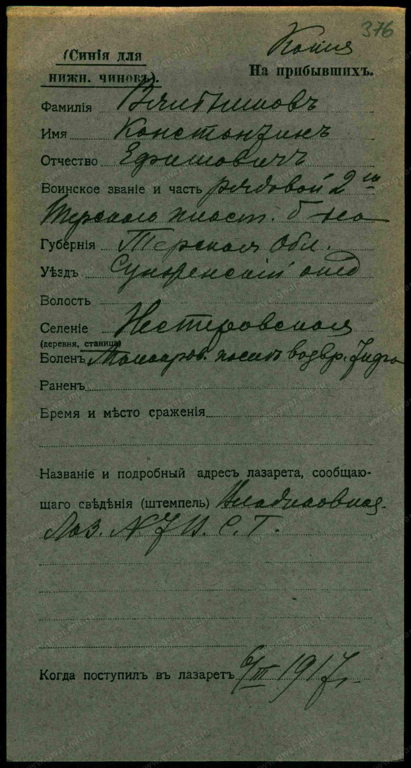 Тип документа Карточка на выбывших (нижние чины)