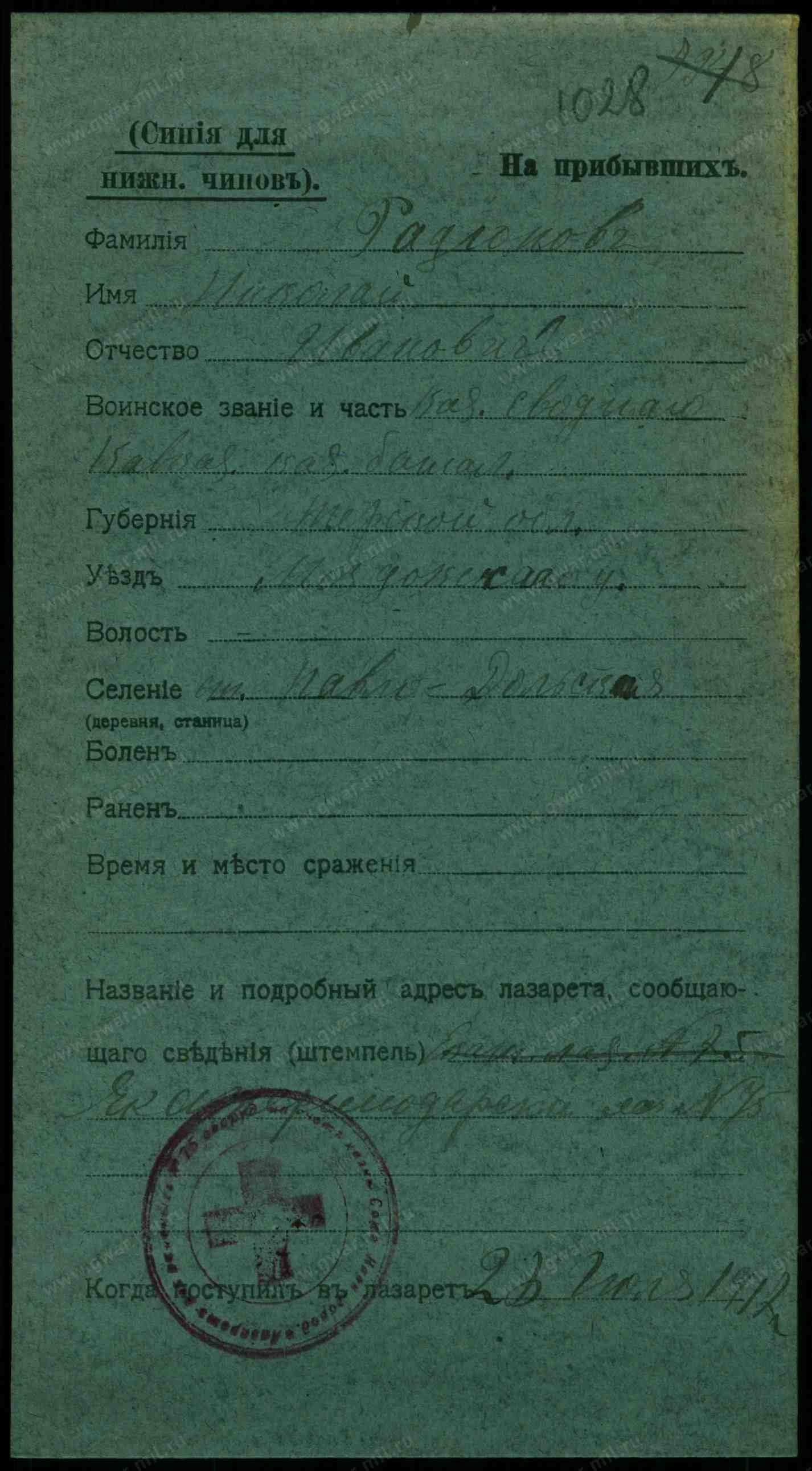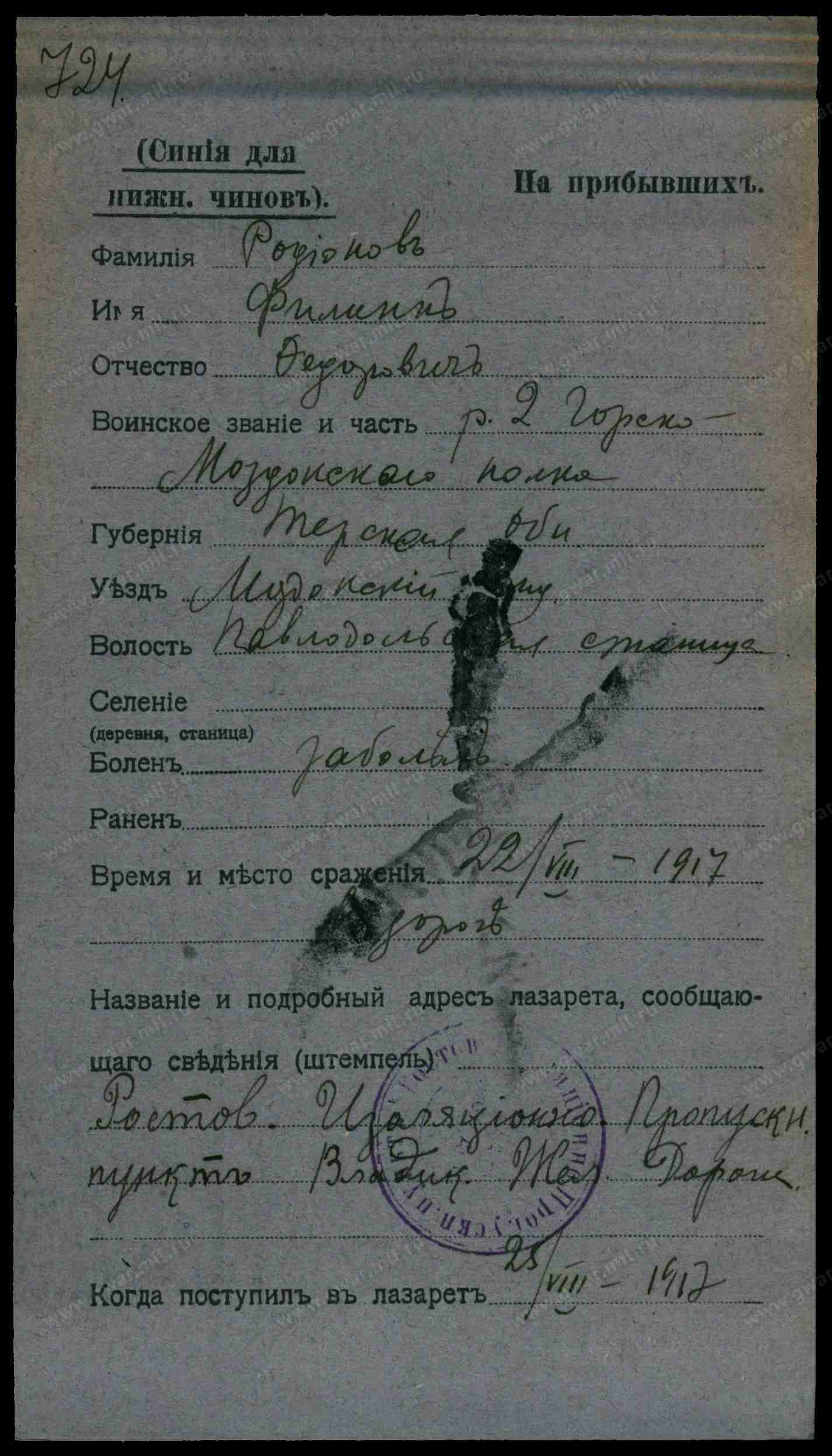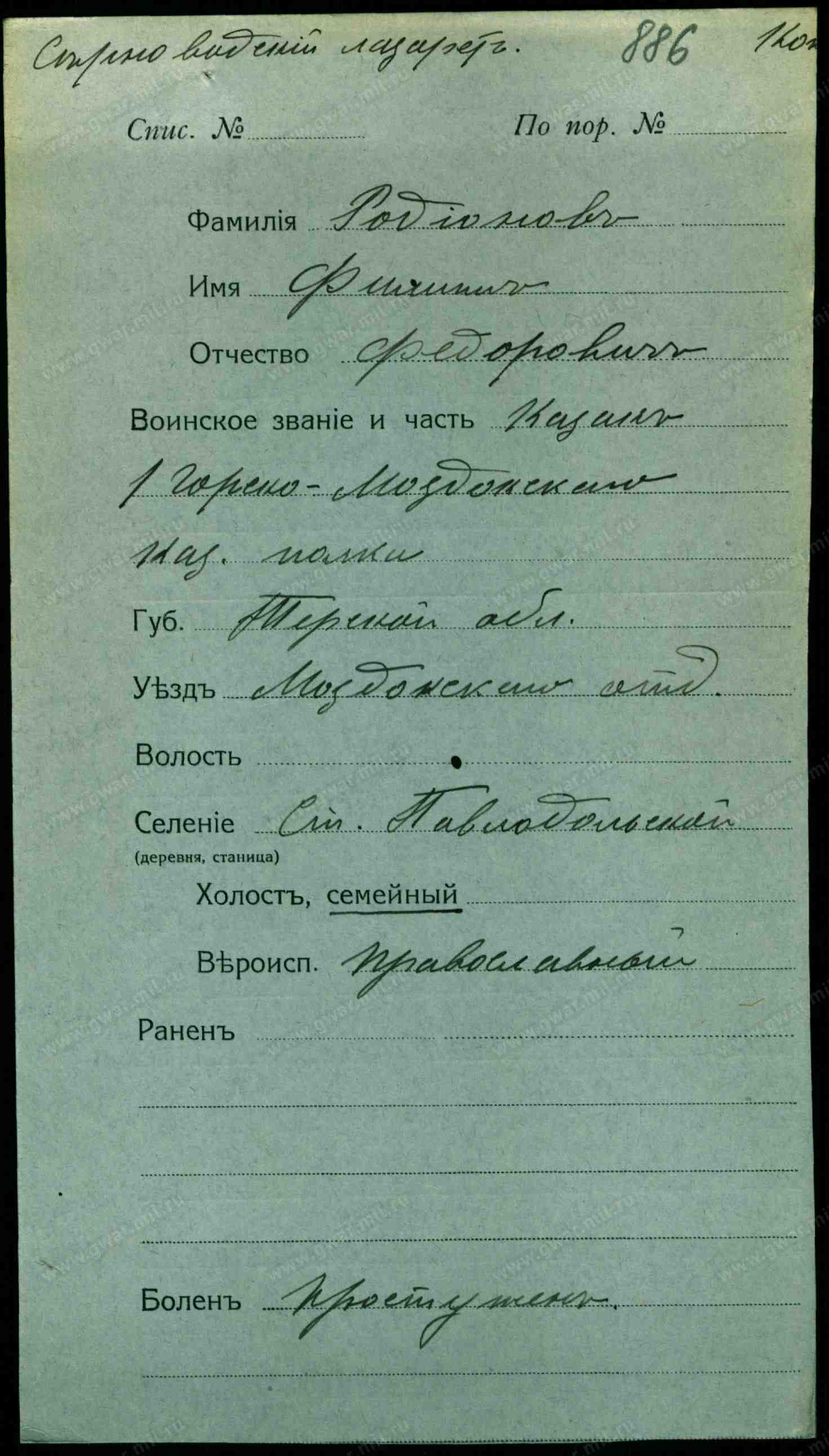 Место рождения Терская обл., Моздокский отдел, Павлодольская станица