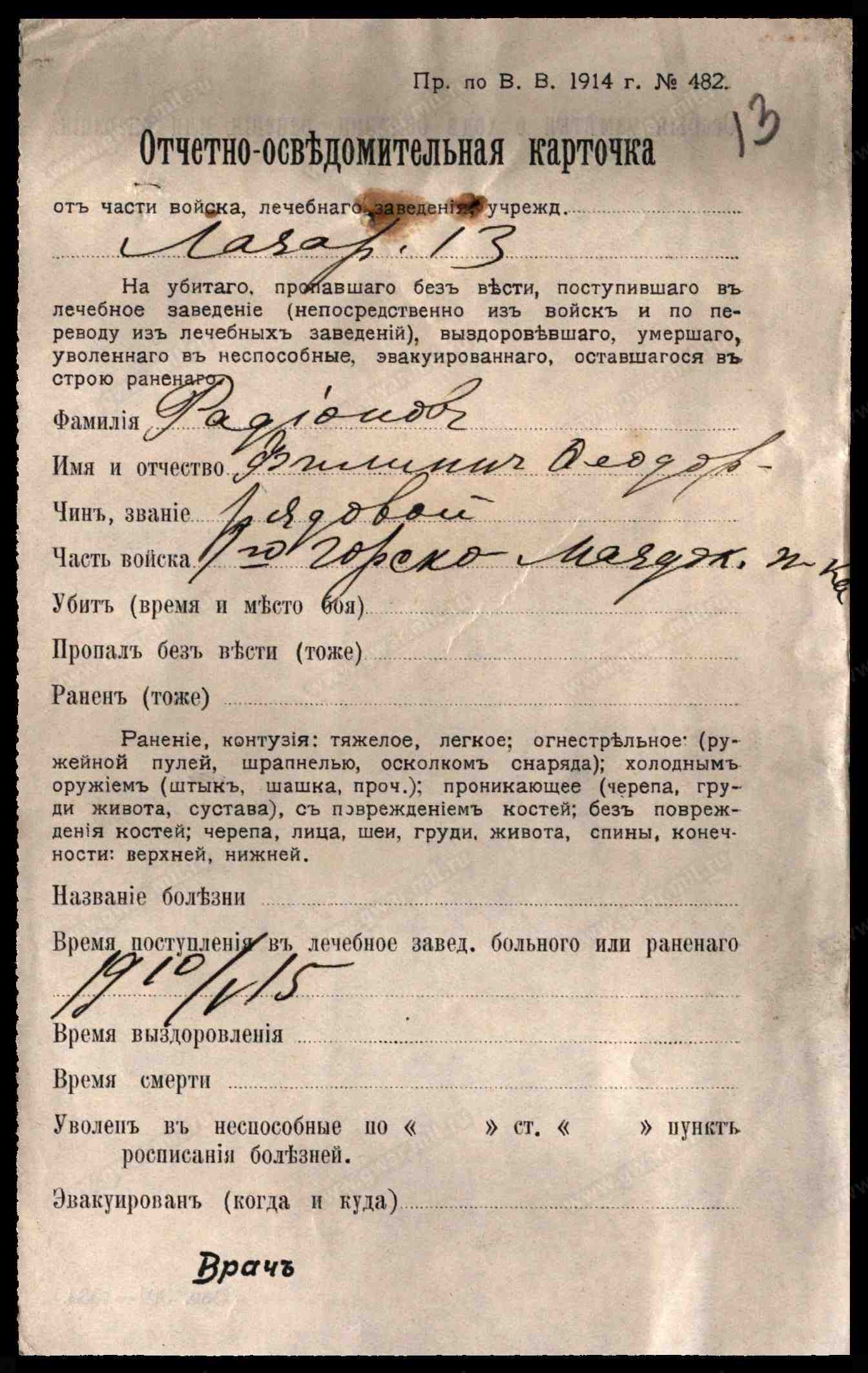 Фонд Картотека бюро учета потерь в Первой мировой войне (офицеров и солдат)