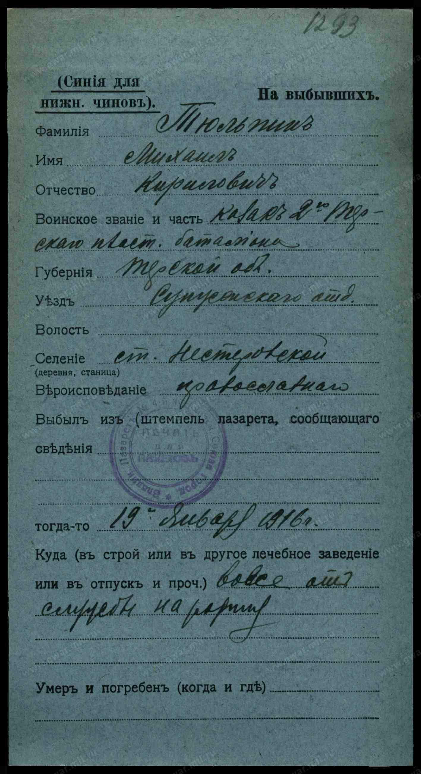 Место выбытия под Жевачев; госпиталь, г. Станиславов
