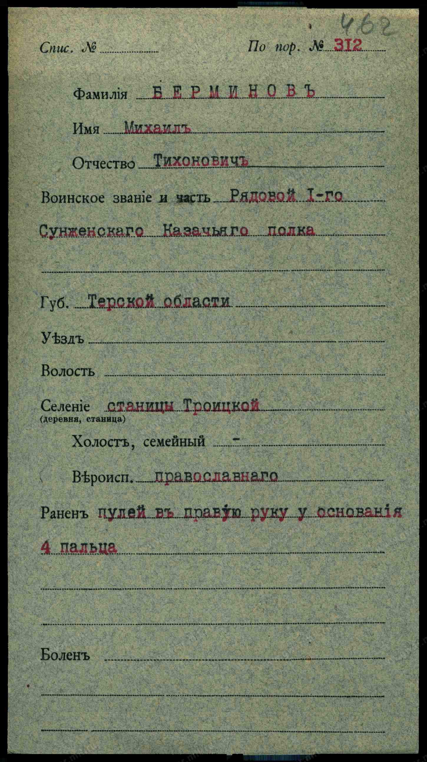 Воинская часть 1-й Сунженско-Владикавказский полк Терского казачьего войска