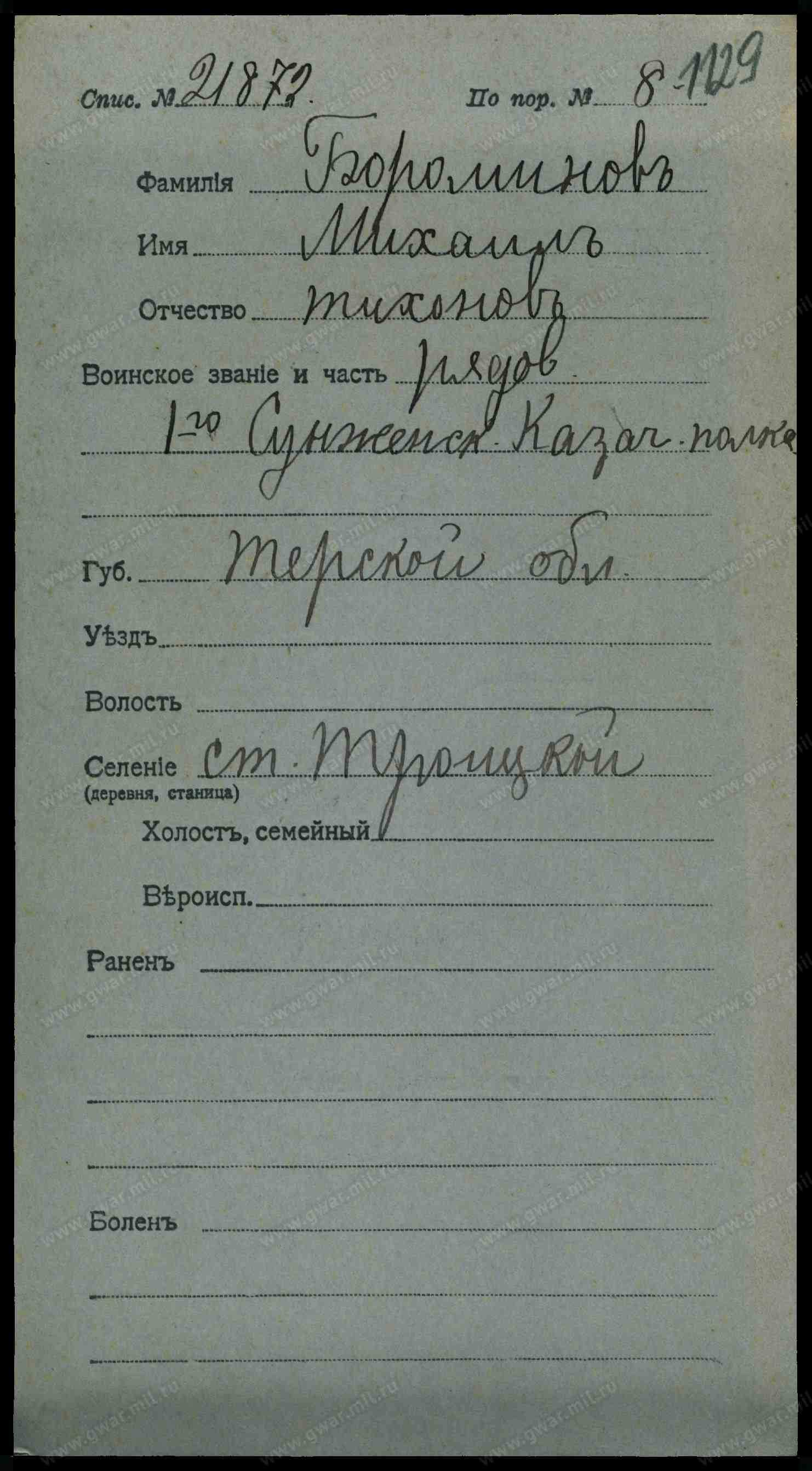 Фонд Картотека бюро учета потерь в Первой мировой войне (офицеров и солдат)