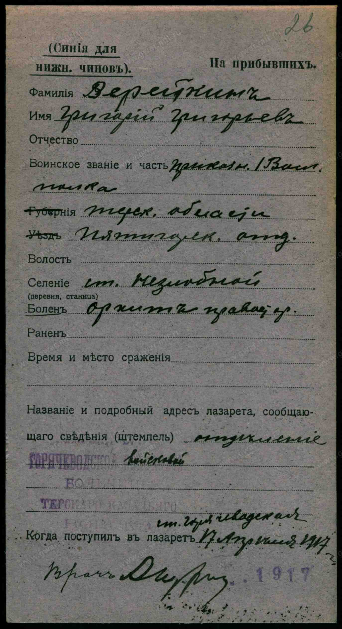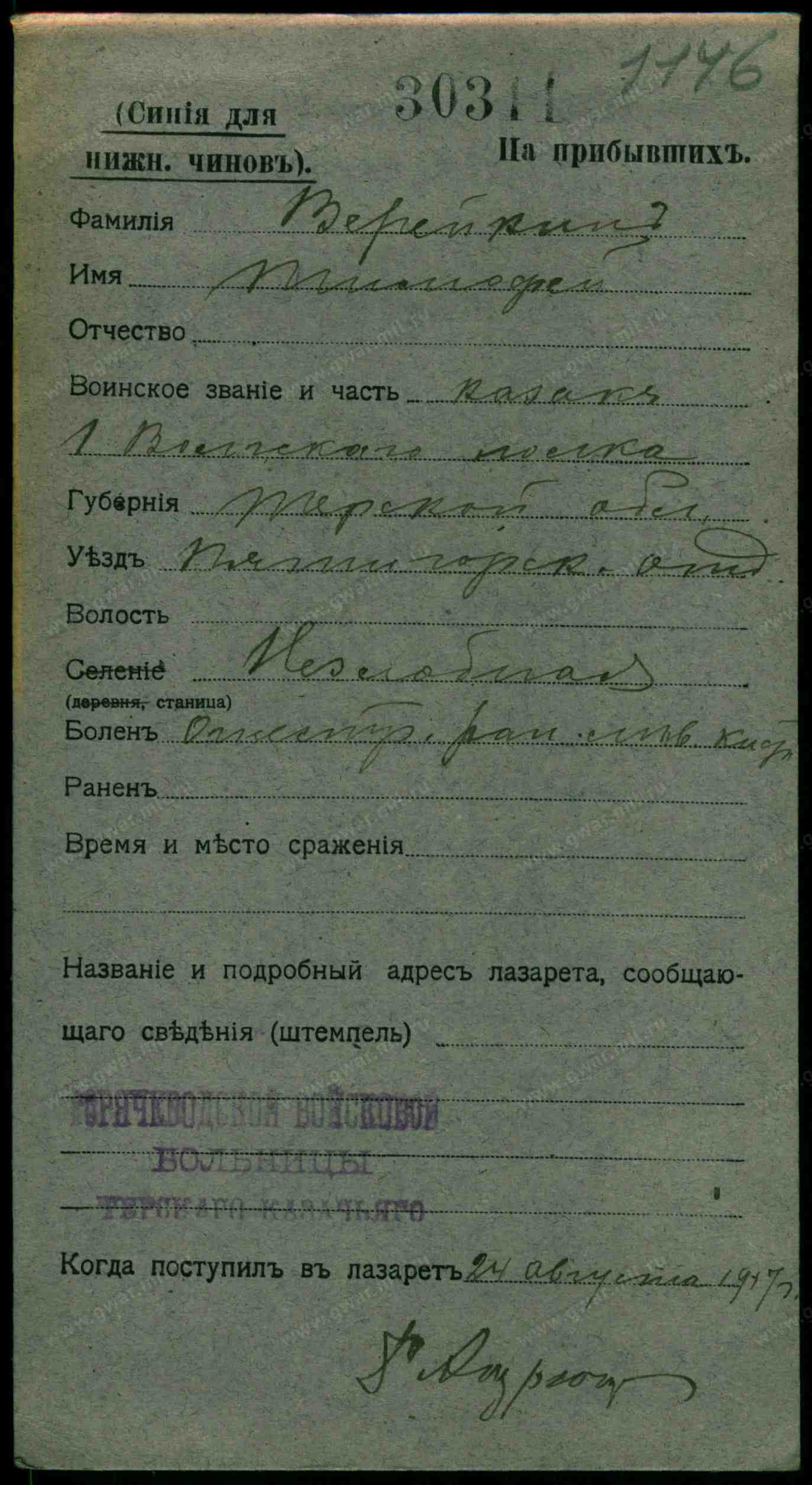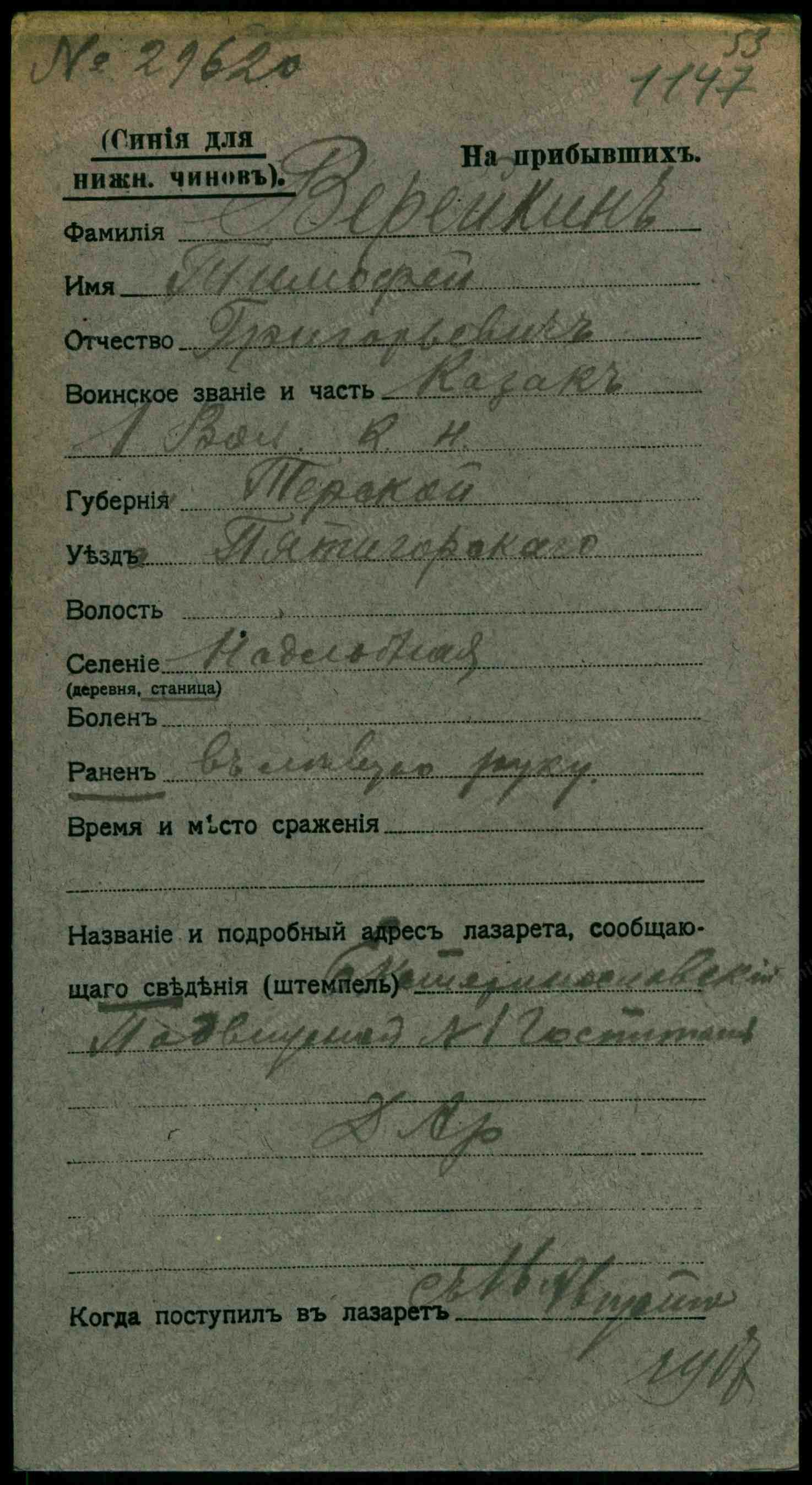 Фонд Картотека бюро учета потерь в Первой мировой войне (офицеров и солдат)