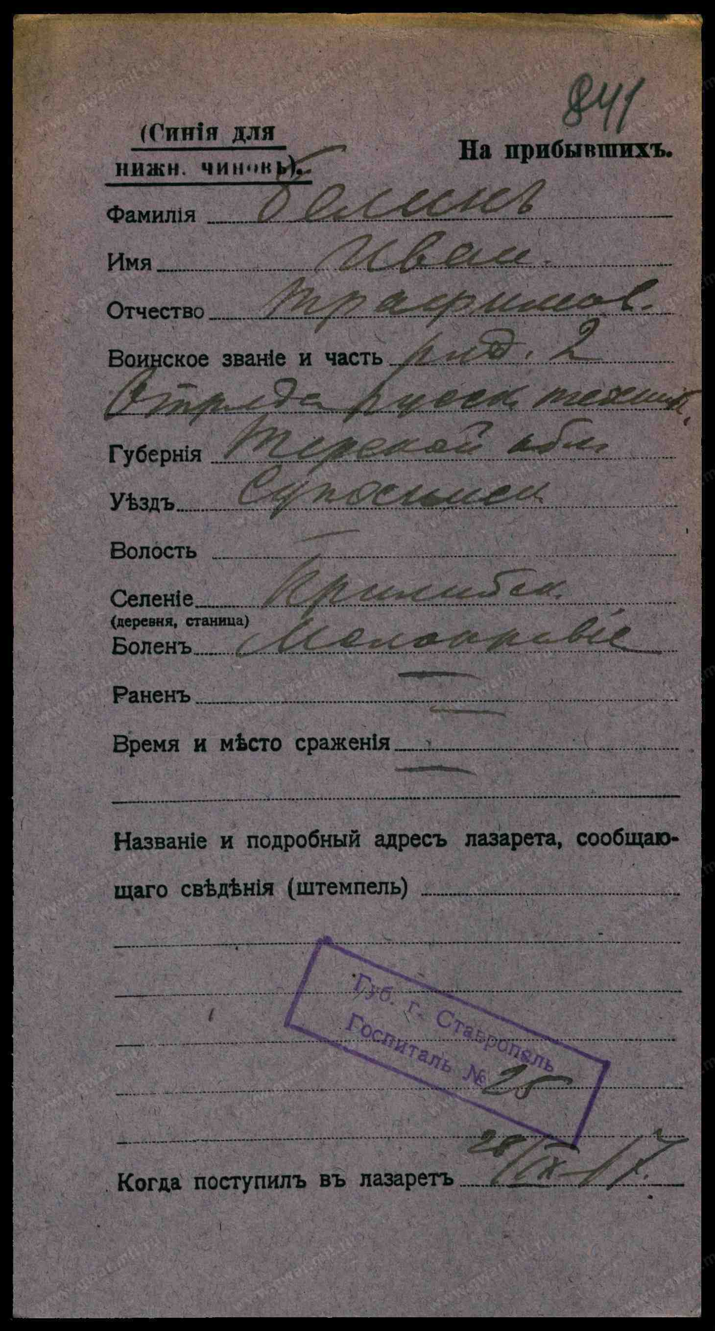 Владикавказкаго, военнаго госпиталя, унтеръ- офицеръ Тихонъ Матвѣевъ Карасевъ.