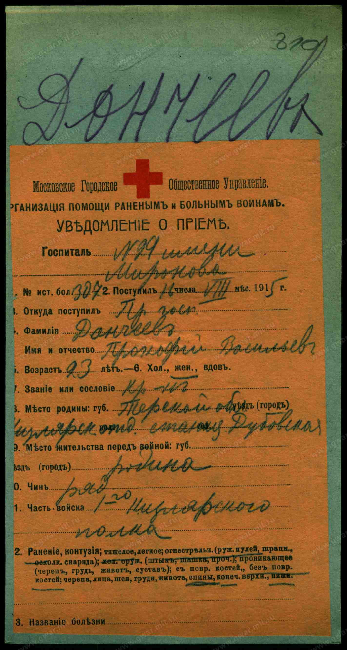 Место рождения Терская обл., Кизлярский отдел, стнц. Дубовская