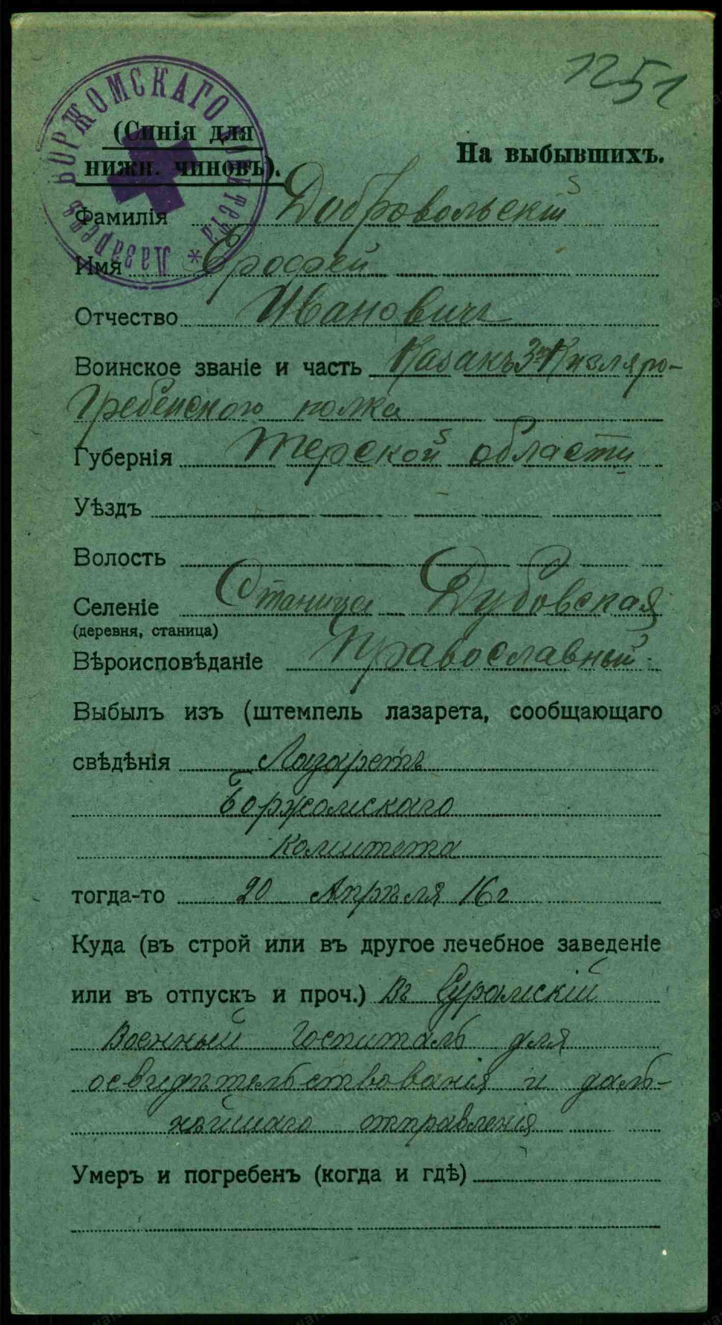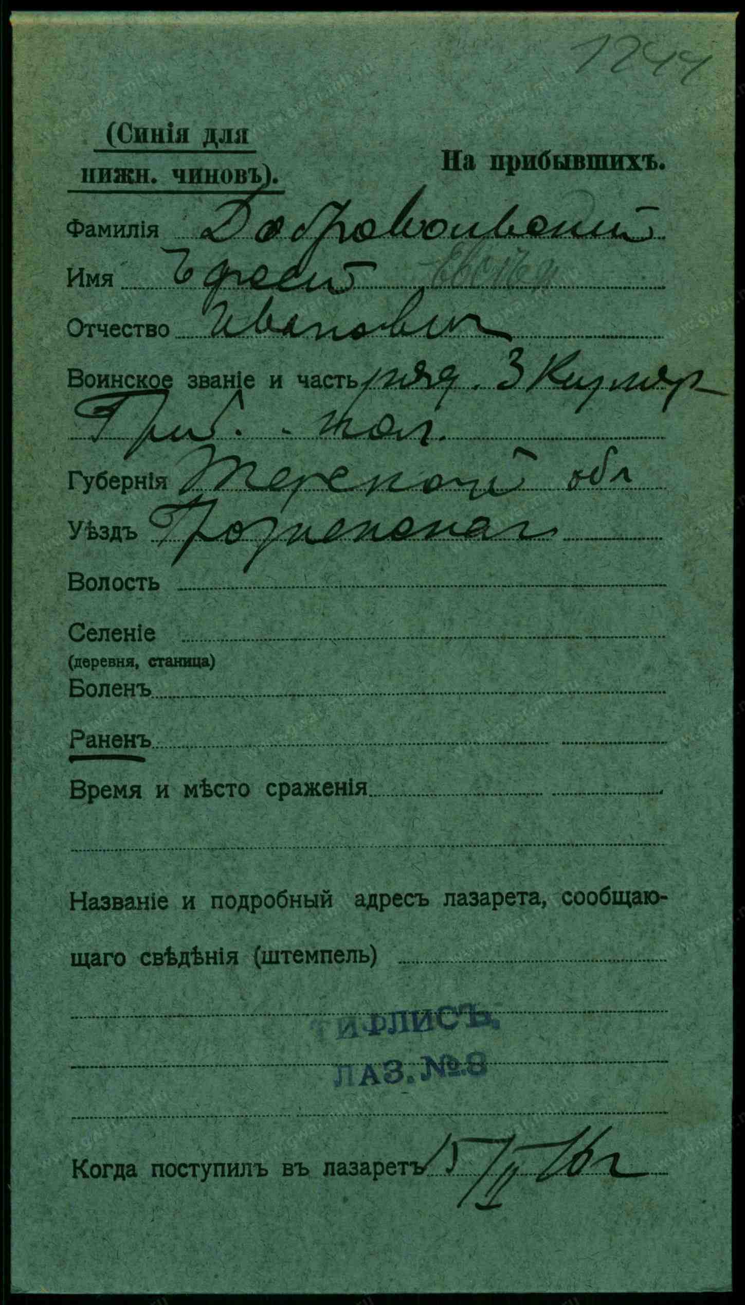 Фонд Картотека бюро учета потерь в Первой мировой войне (офицеров и солдат)