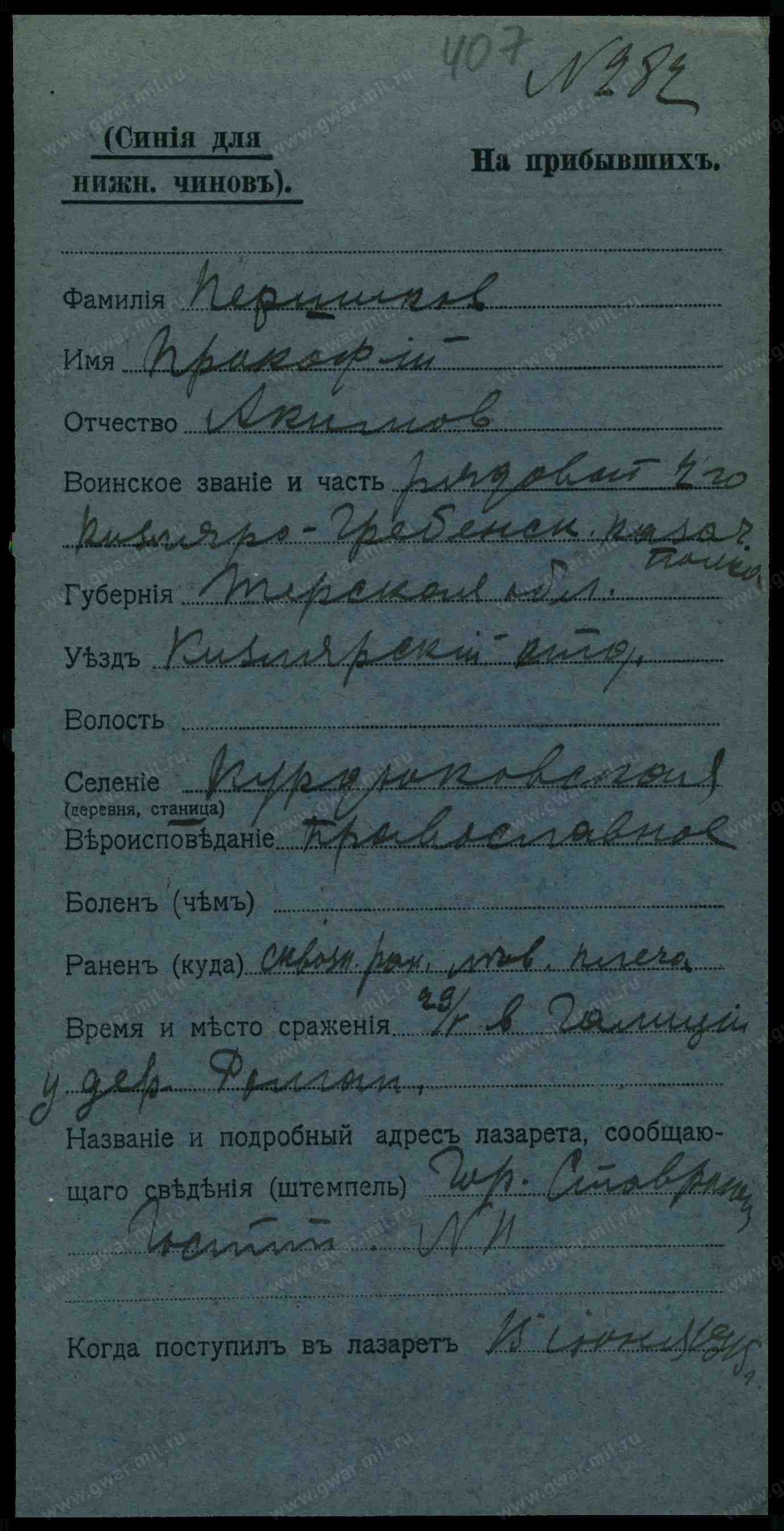 Фонд Картотека бюро учета потерь в Первой мировой войне (офицеров и солдат)
