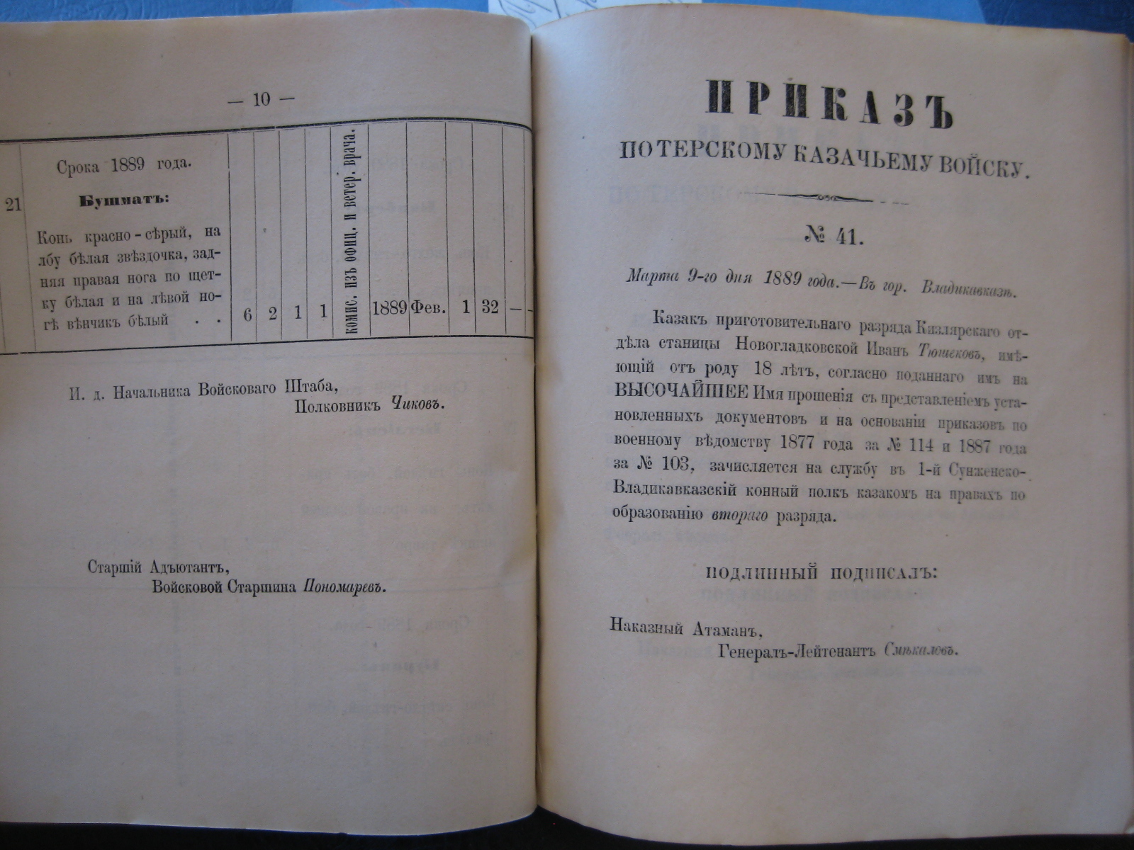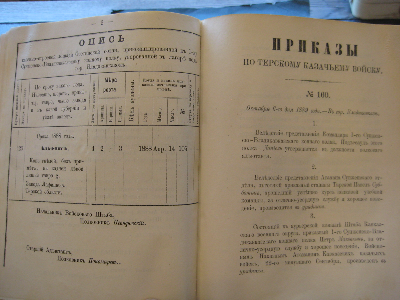 Объявляя по ввѣренному мнѣ войску приказъ по Кавказскому военному округу отъ 29-го минувшаго Сентября за No 329, предписываю Командиру 1-го Сунженско-Владикавказскаго коннаго полка: