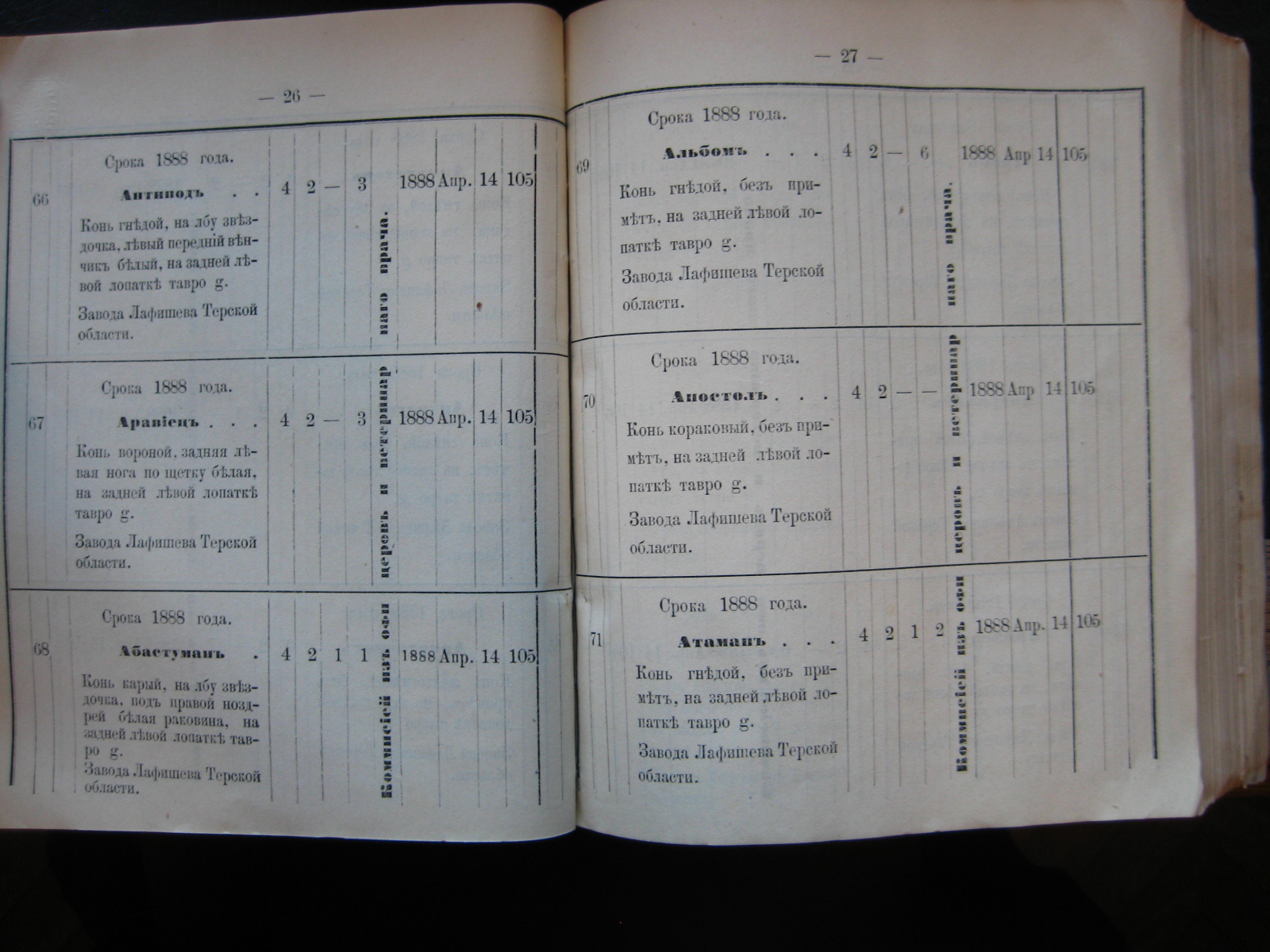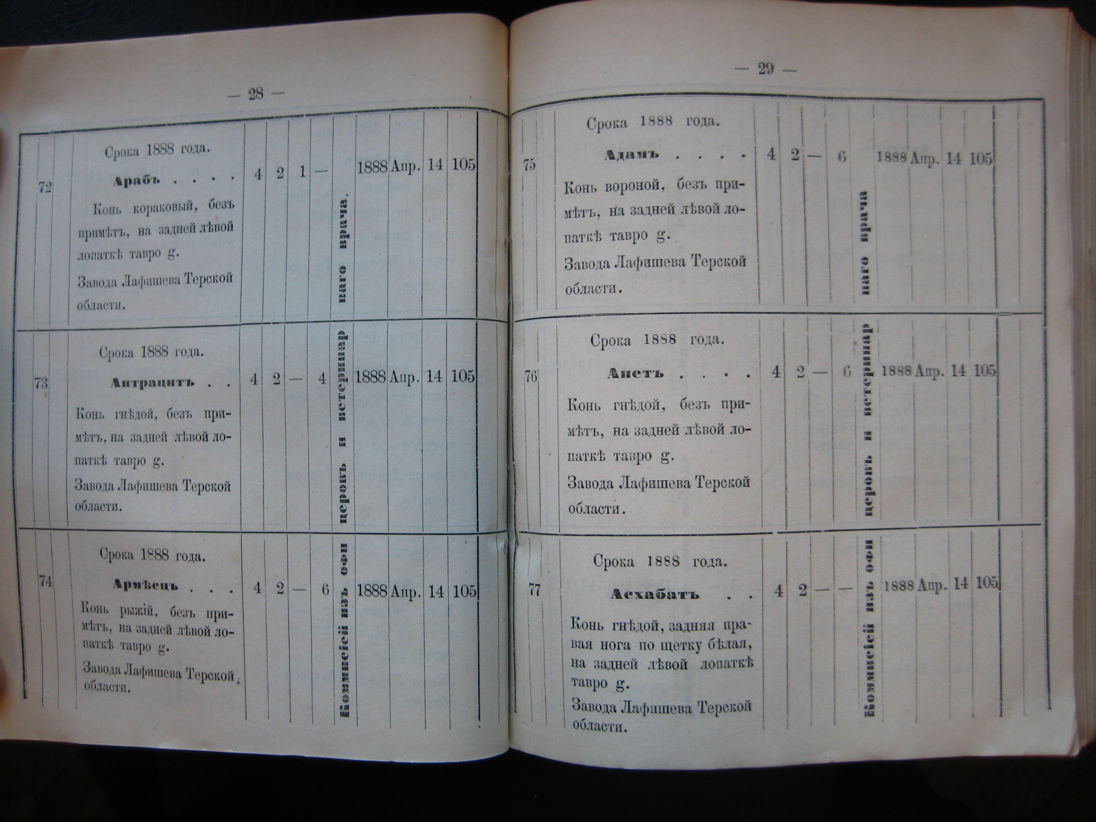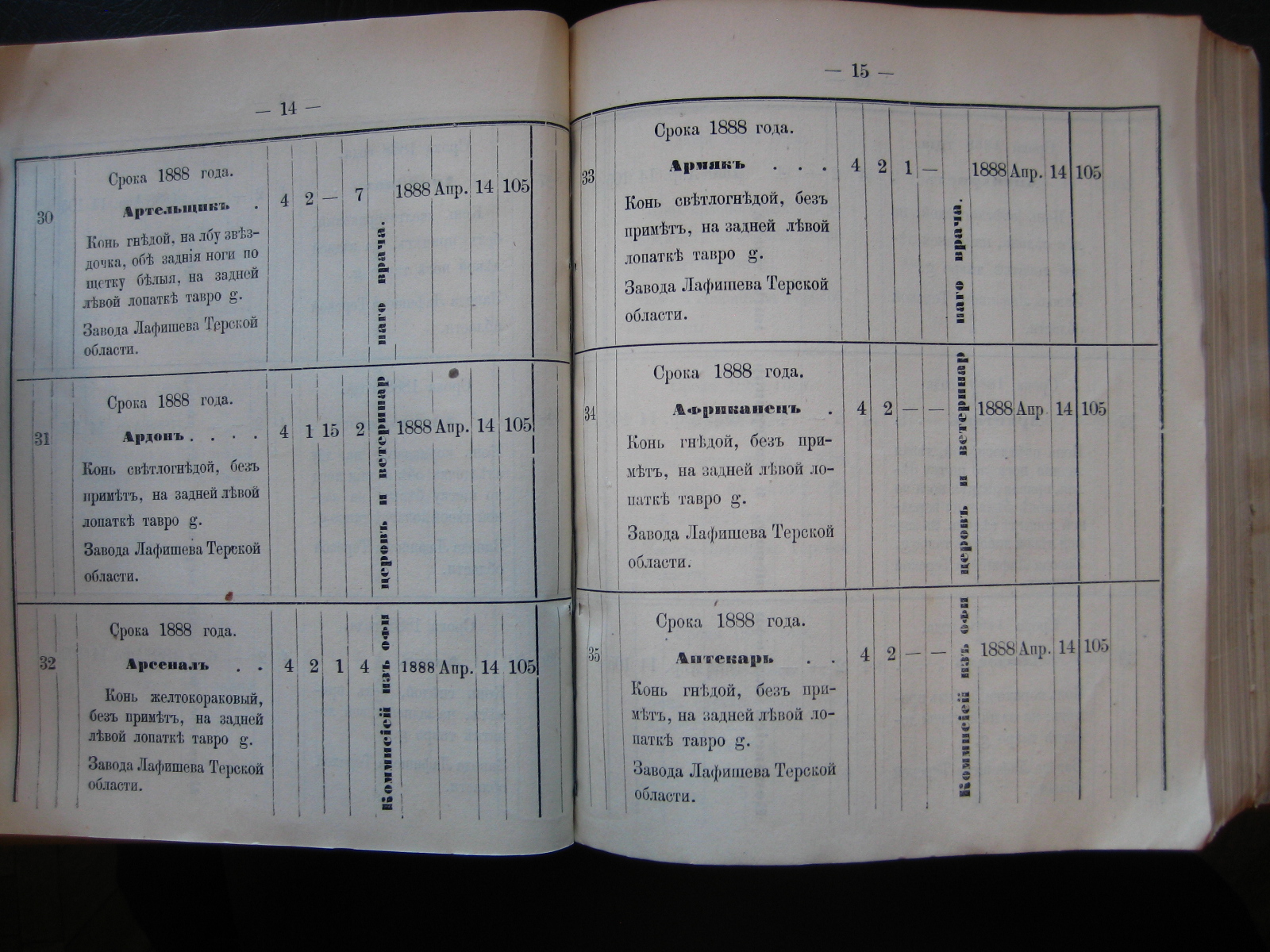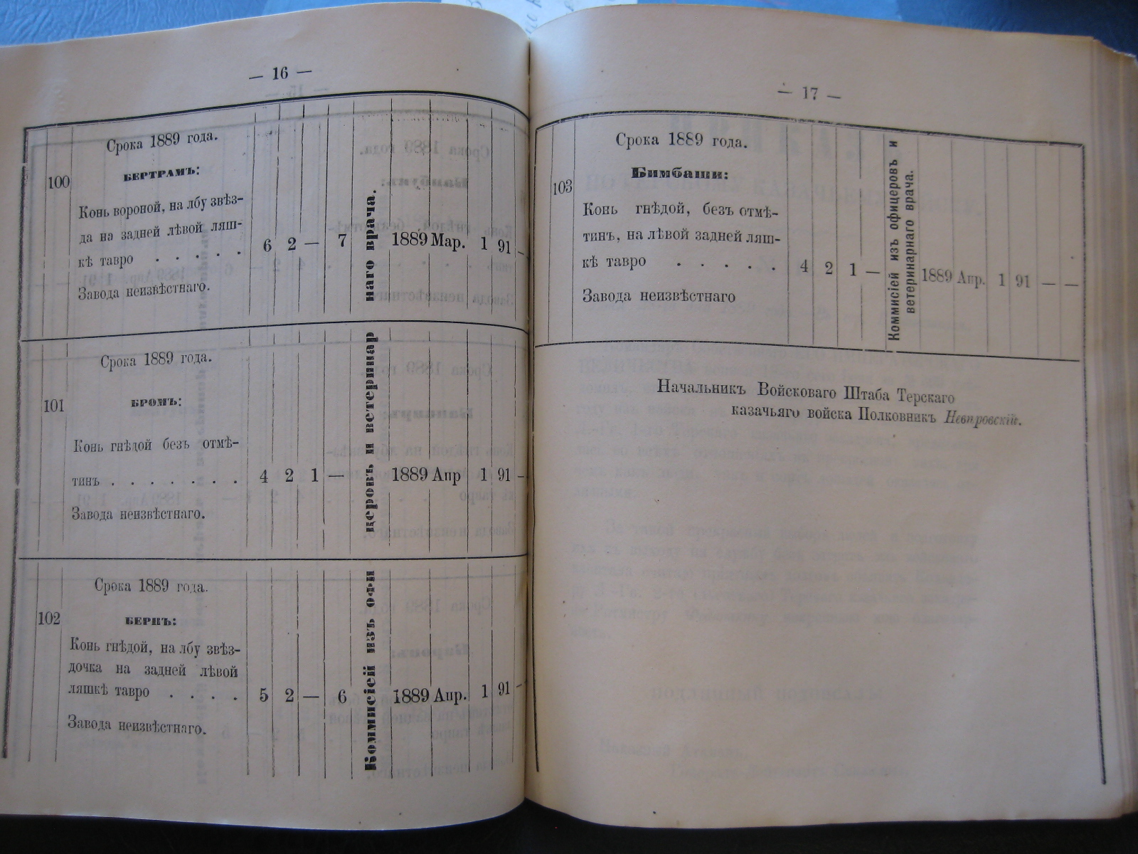 13-го минувшаго Сентября пала отъ заворота кишекъ, какъ удостовѣрено актомъ за No 131 коммисіи, казенно-строевая лошадь подъ названіемъ "Ардаганъ" Осетинской сотни, прикомандированной к 1-му Сунженско-Владикавказскому полку.