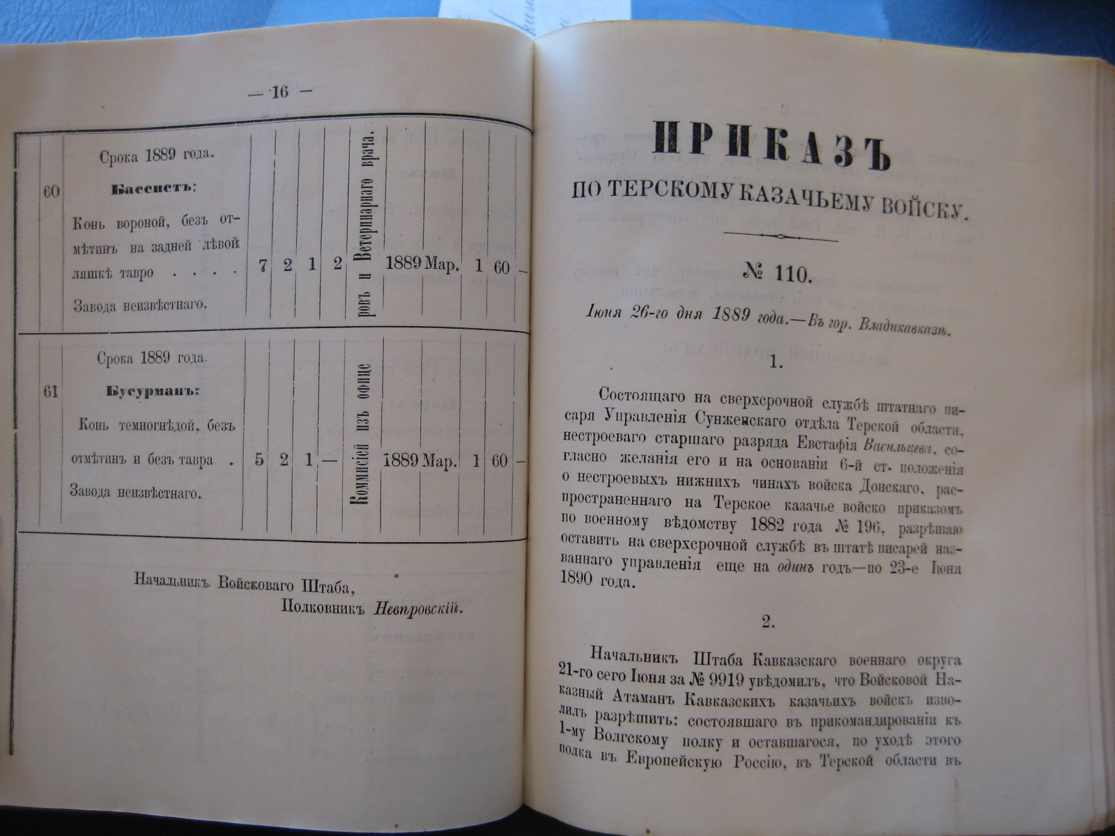 Ноября 15-го дня 1889 года. - Гор. Владикавказѣ.
