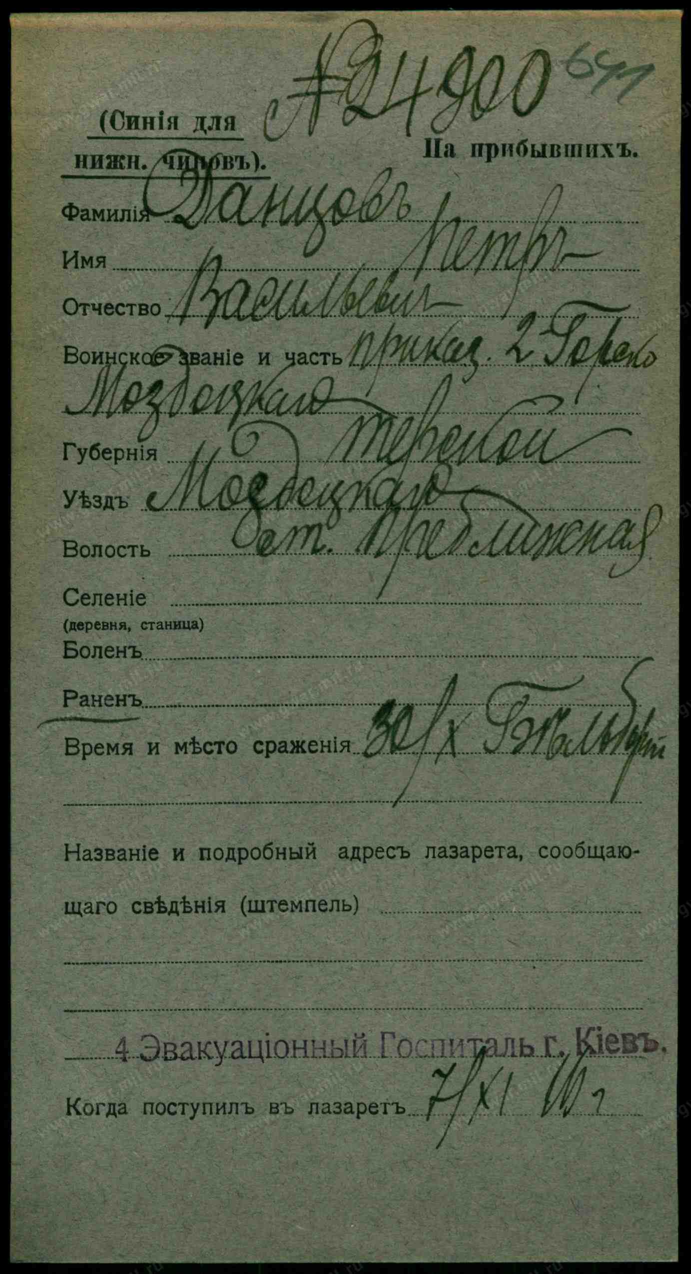 Фонд Картотека бюро учета потерь в Первой мировой войне (офицеров и солдат)