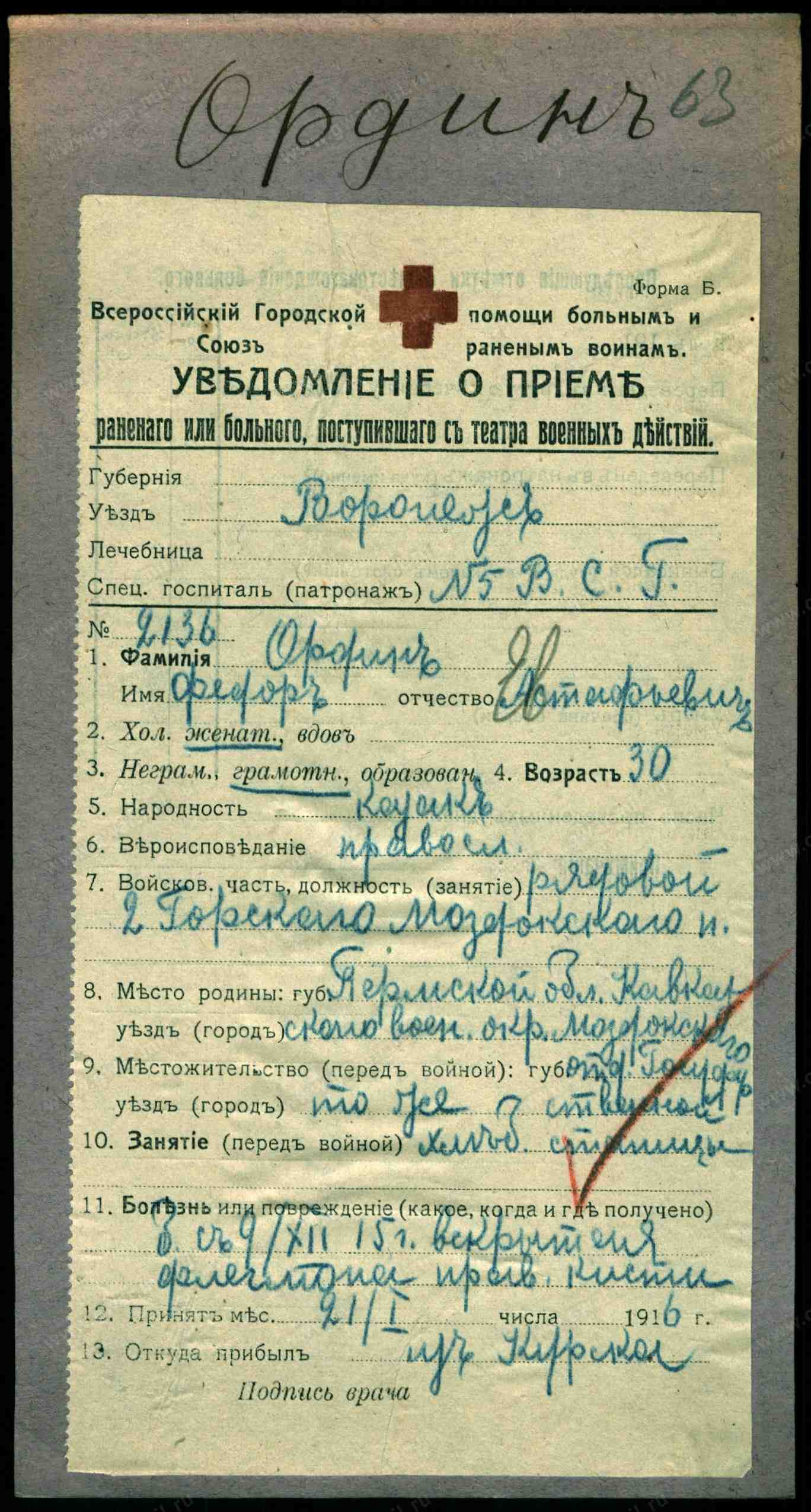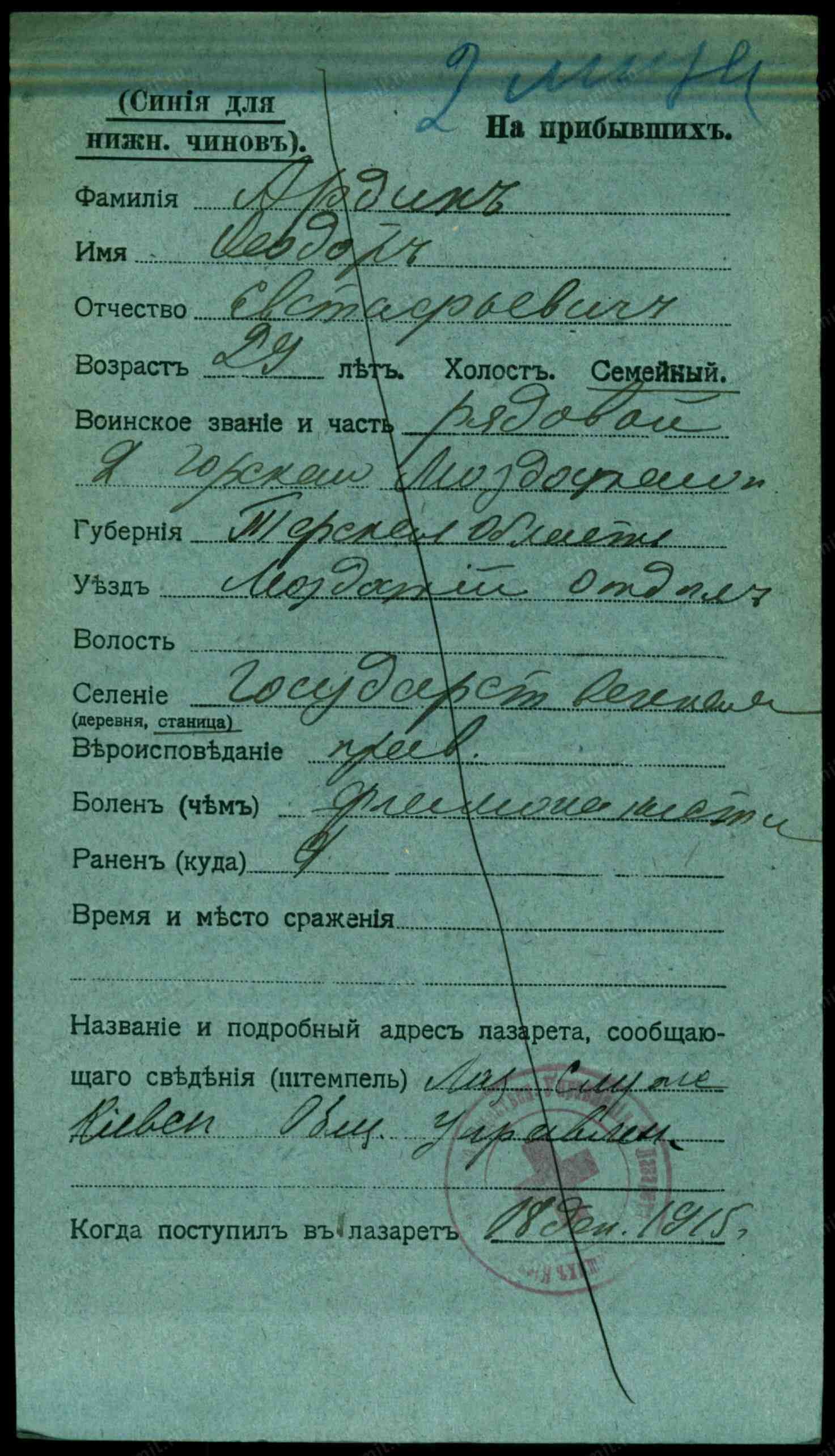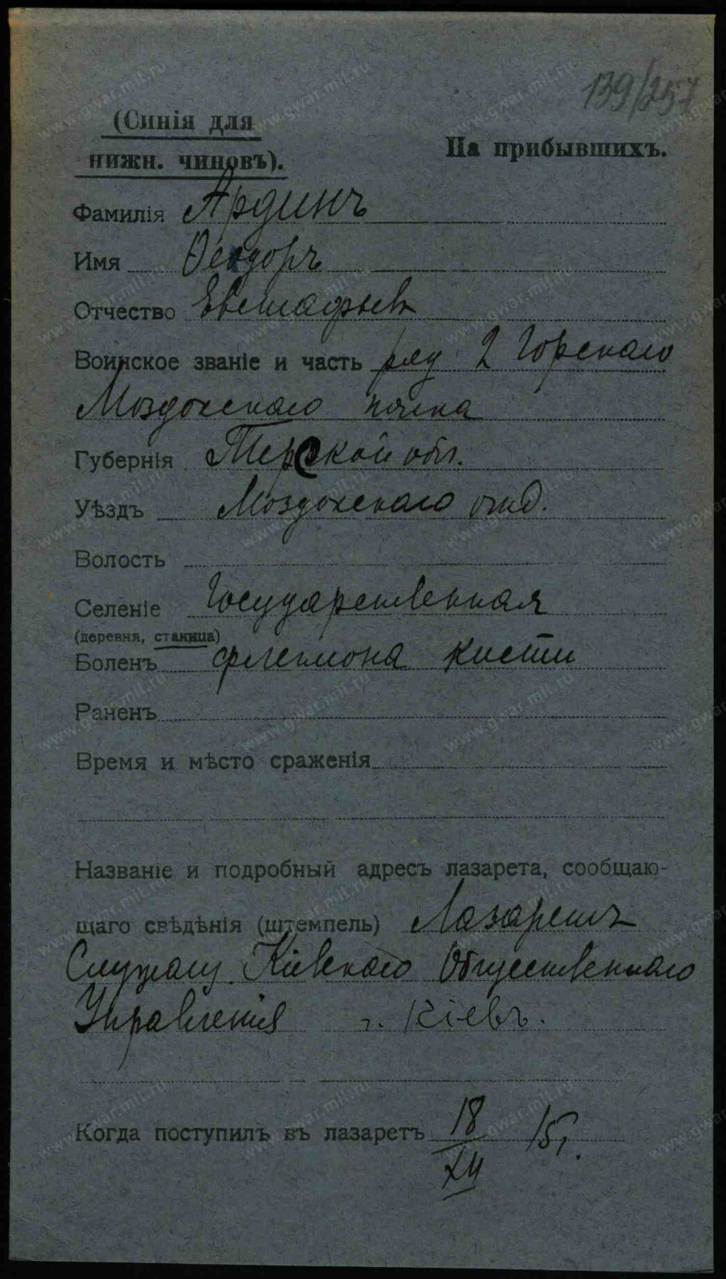 Место рождения Терская обл., Моздокский уезд, стнц. Государственная