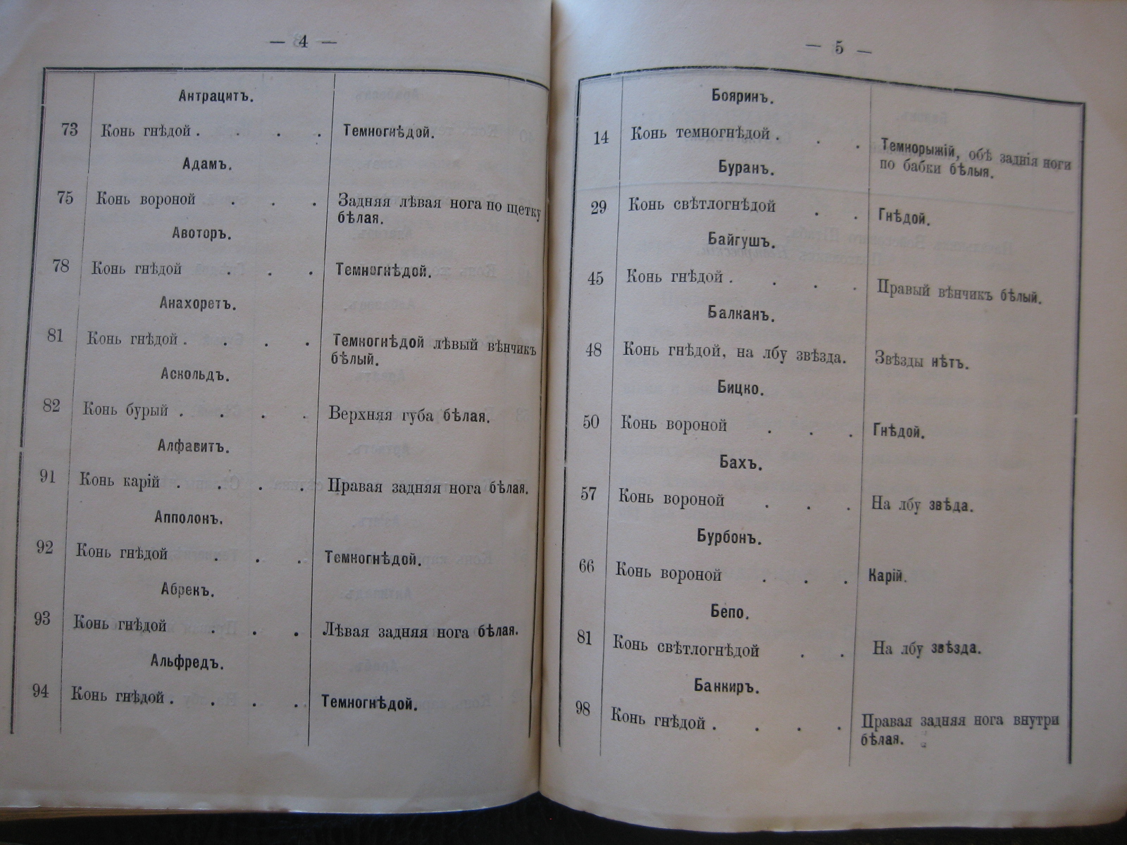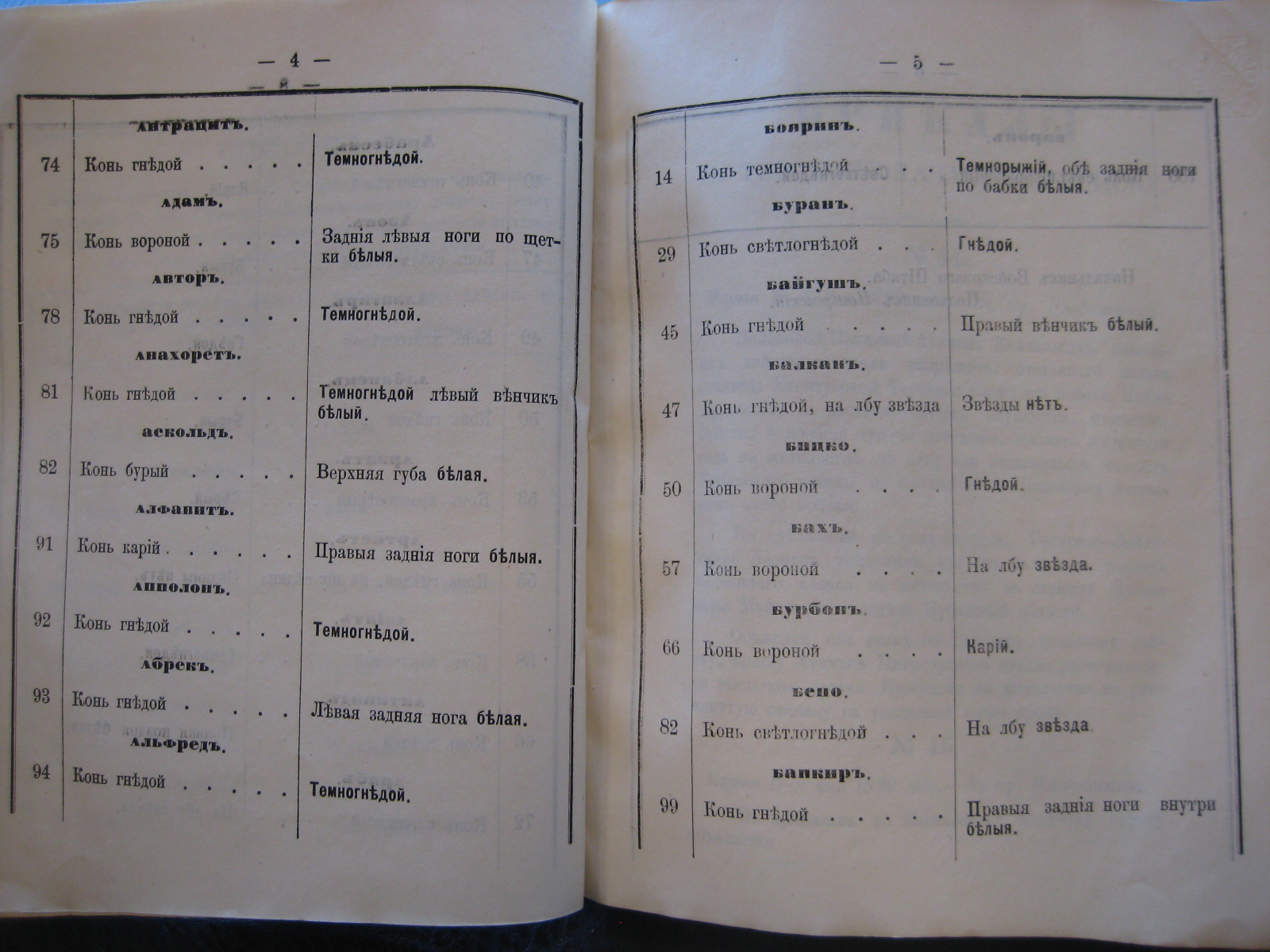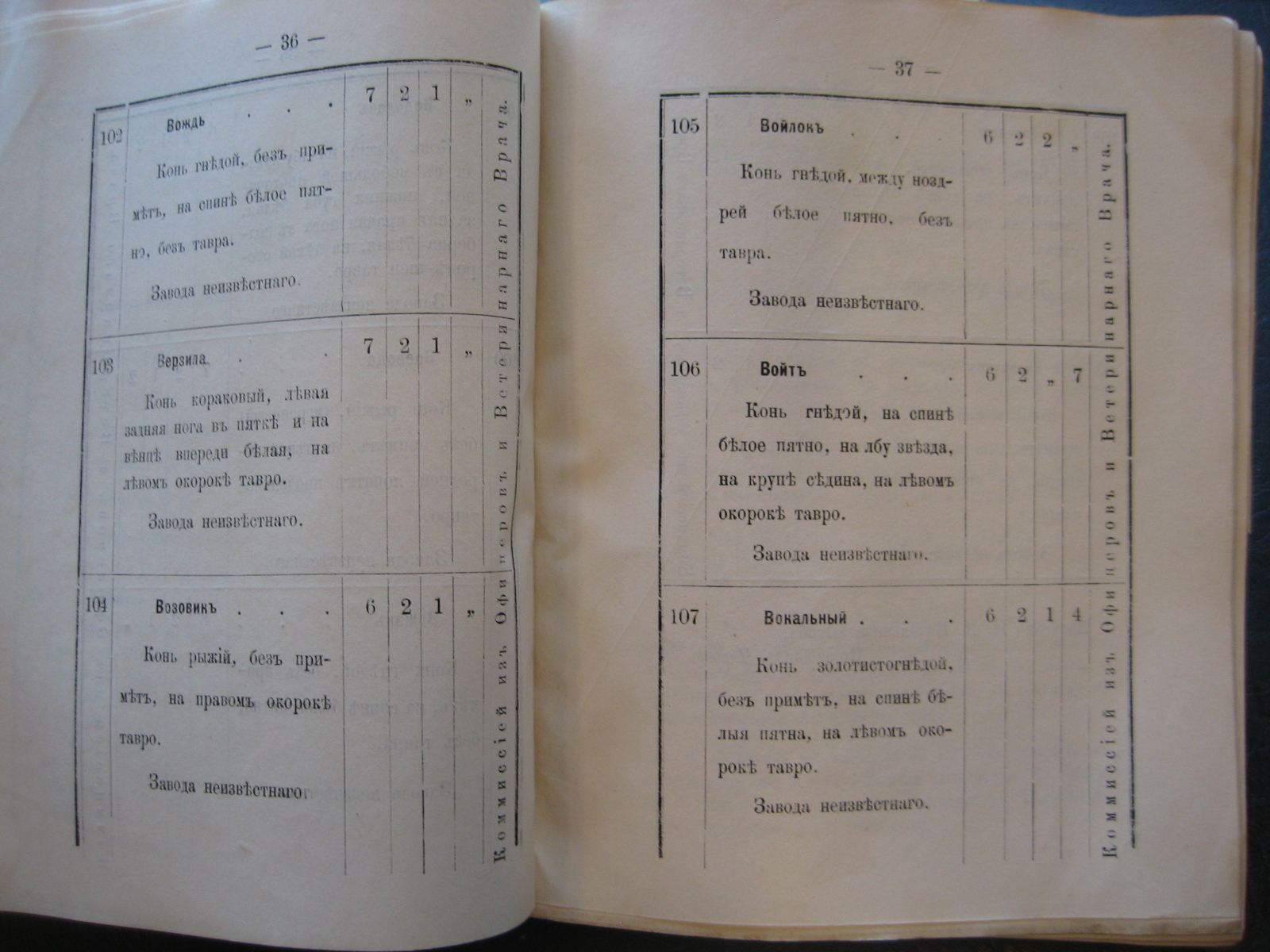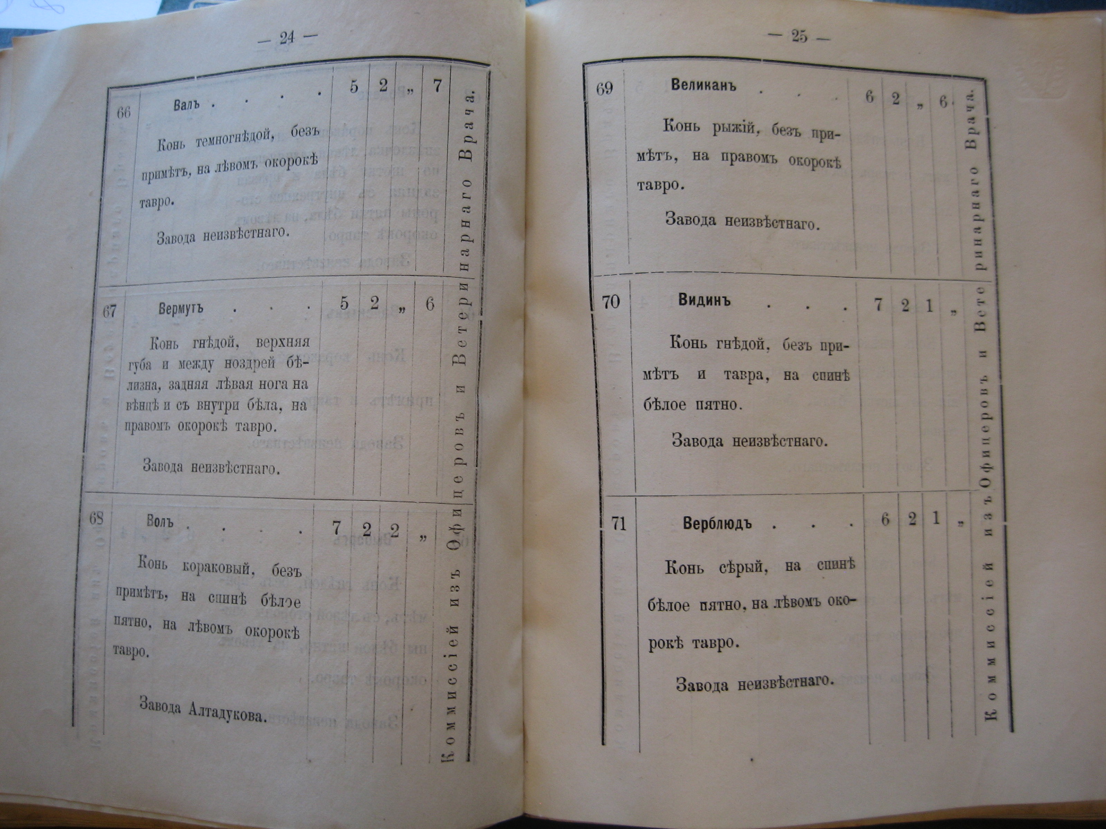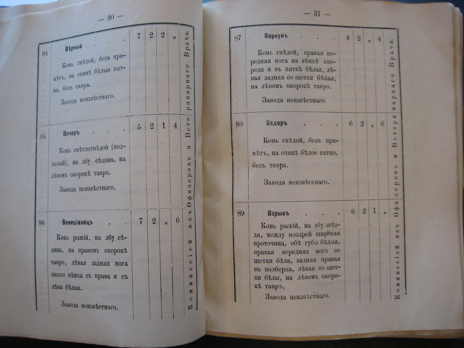 15-го Іюля прошлого года, во время разборки из табуна строевыхъ лошадей Осетинской сотни, прикомандированной къ 1-му Сунженско-Владикавказскому конному полку, три лошади этой сотни бросились прямо на людей объезжавшихъ табунъ, сбили ихъ и бѣжали по направлению къ реке Тереку. Не смотря на принятыя въ то же время мѣры къ поимкѣ бѣжавшихъ лошадей изъ нихъ только двѣ 17 Iюля найдены близъ станицы Змѣйской, а третья подъ названиемъ "Булат", срока 1889 года до настоящего времени нигдѣ неотыскана.