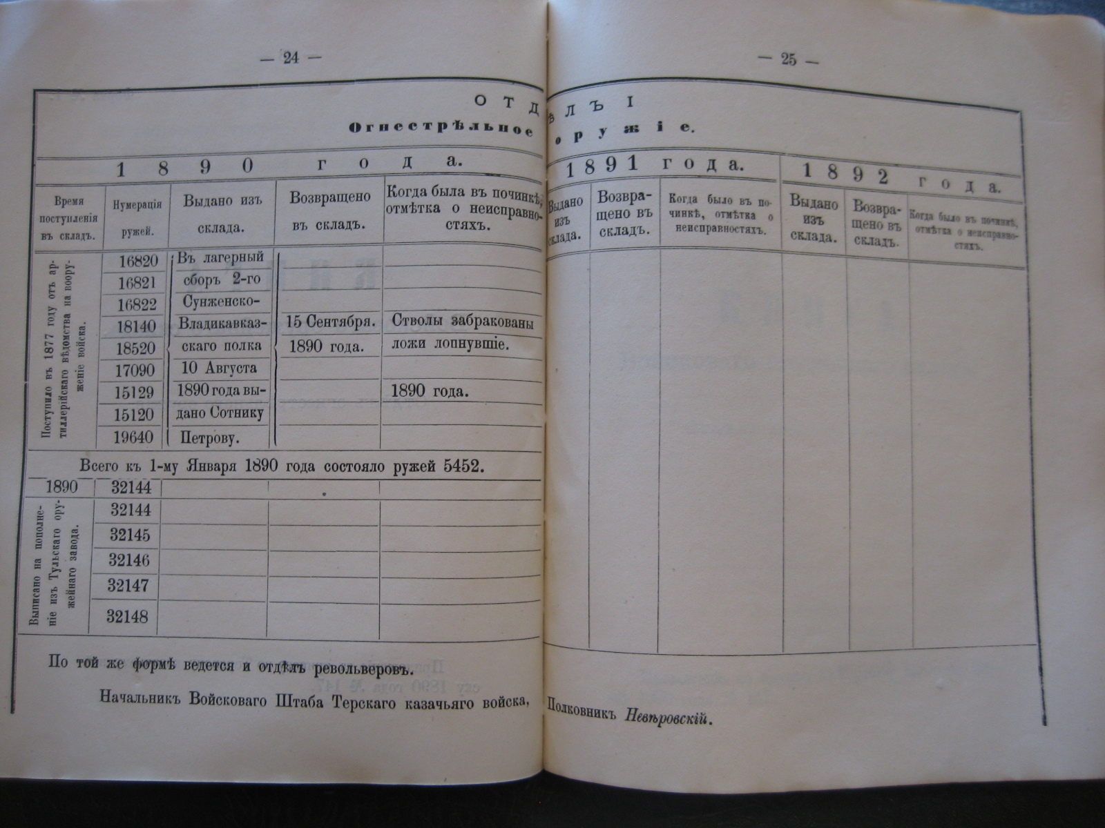 2) От 22 Декабря за No 449, - о принятіи къ руководству циркуляра Главнаго Штаба отъ 2-го Ноября за No 249, - съ вѣдомостями рабочему инструменту, положенному содержать въ войсковыхъ оружейныхъ мастерскихъ въ мирное и военное время.