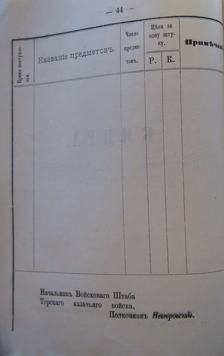 По приказанію наказнаго Атамана объявляю объ этомъ по Терскому казачьему войску для надлежащаго, до кого относится, исполненія.