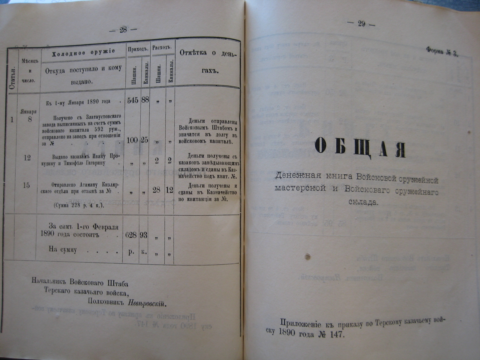 5) Отъ того же числа за No 5, - о принятіи къ исполненію циркуляра Главнаго Штаба отъ 28 Ноября 1889 года за No 273, - о надлежащемъ адресованіи заказовъ на офицерское холодное оружие.