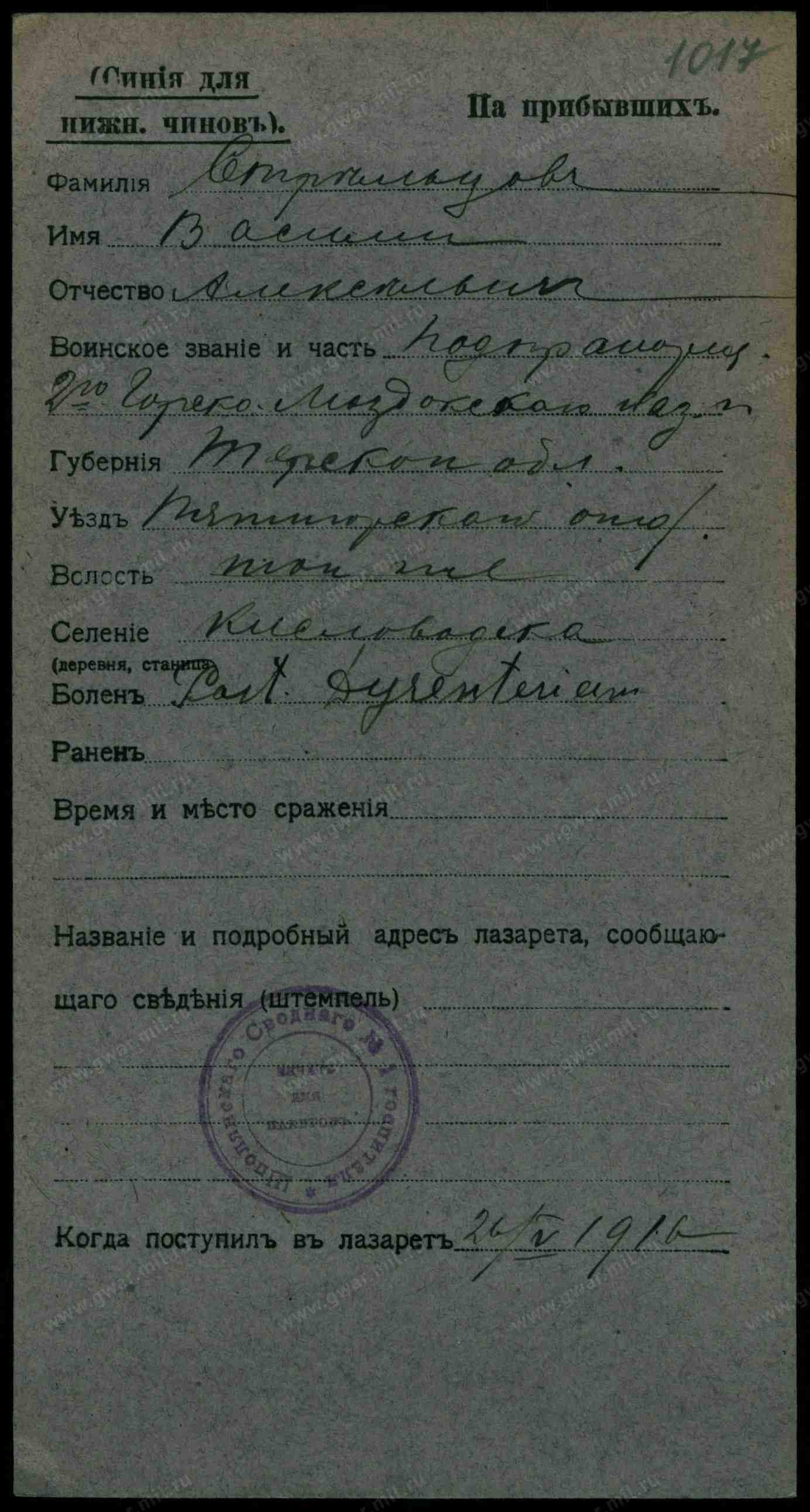 Место рождения Терская обл., Пятигорский отдел, Пятигорская вол., г. Кисловодск