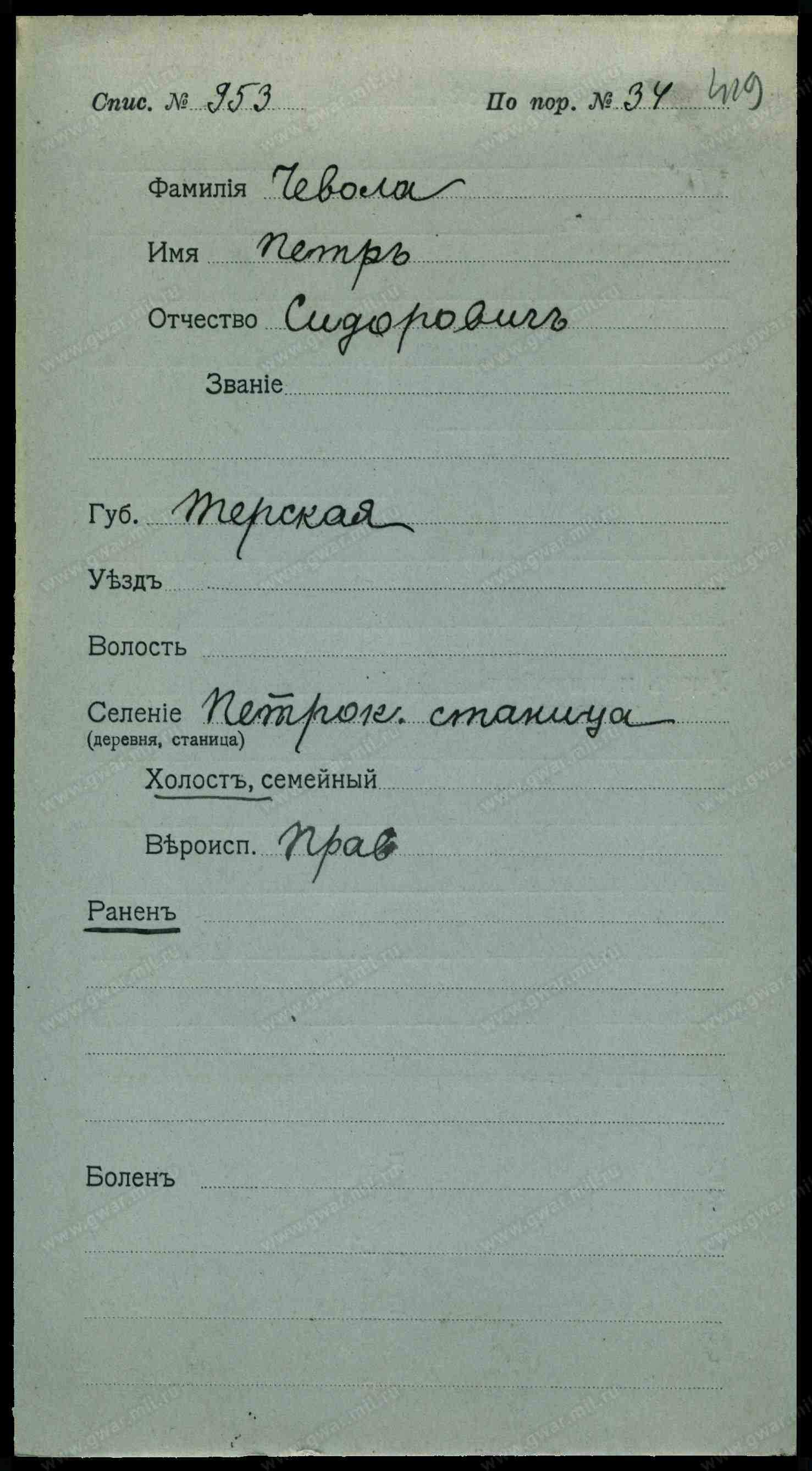 Мать: Евдокия Чевола ст. Петропавловская, Грозненская обл.