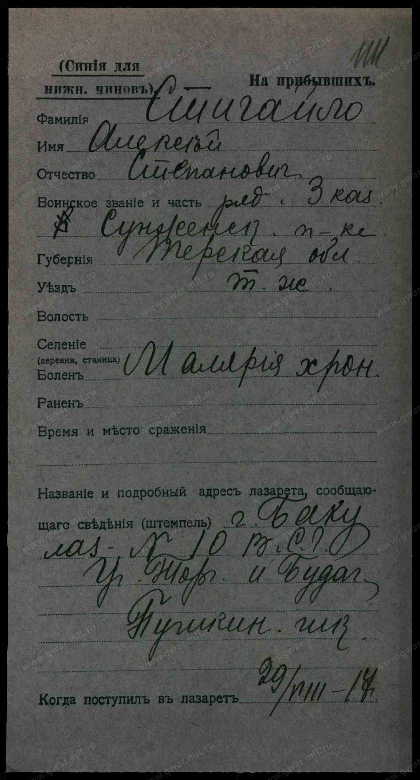 по невѣстѣ: Ур. ст. Змѣйской, Сунженскаго отдѣла Терской области
