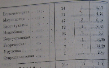 Такимъ образомъ въ лагерномъ сборѣ участвовало и находилось на лицо - одинъ штабъ и 19-ть оберъ-офицеровъ. А принимая общее число обучавшихся казаковъ всѣхъ трехъ разрядовъ въ 1427 человѣкъ, на каждаго офицера приходилось по 78 казаковъ при 3-4 урядникахъ. Въ лагерѣ же находился все время и Атаманъ Пятигорского отдѣла.