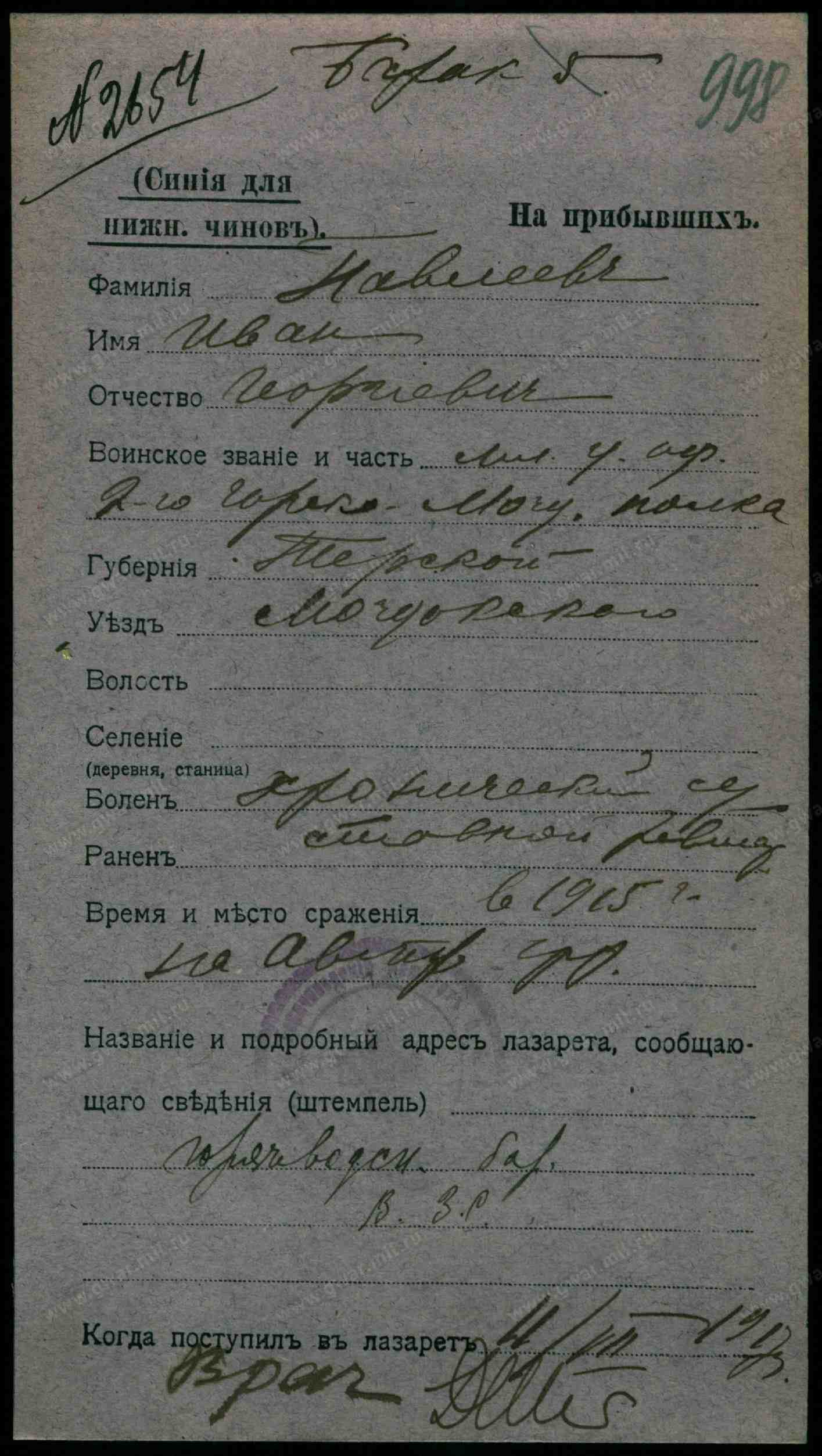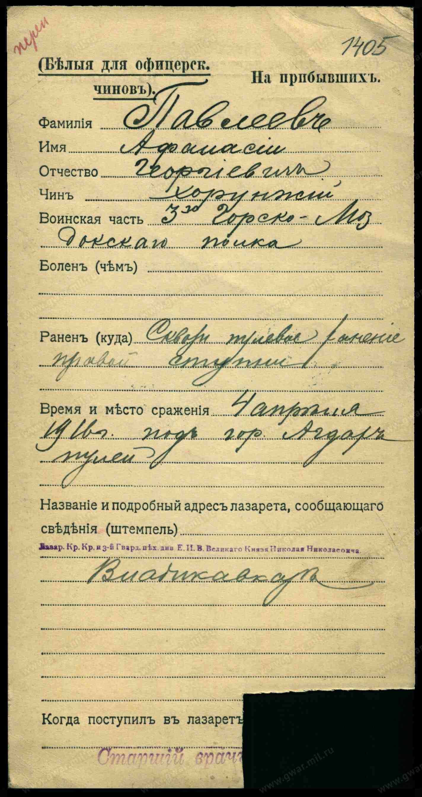Тип документа: Карточка на прибывших (Белые, для офицерских чинов)